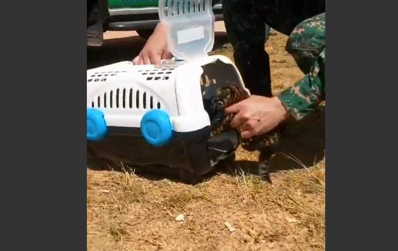 MANHUMIRIM (MG) - A Polícia Militar de Meio Ambiente, atendendo o chamado de moradores do Córrego dos Lessas em Manhumirim realizou o resgate de mais um animal silvestre vítima das queimadas e incêndios florestais.