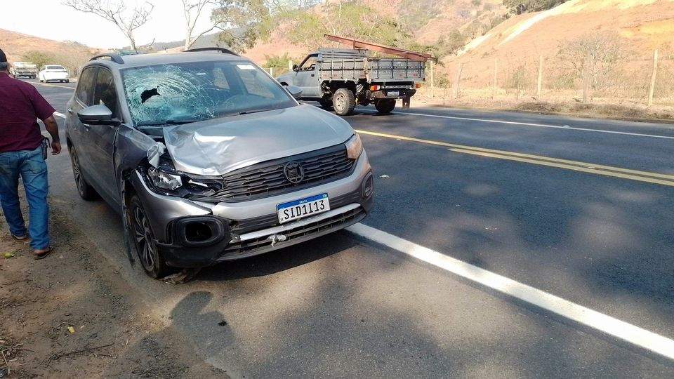ABRE CAMPO (MG) - Um veículo T-Cross atropelou em um casal no km 93 da BR-262, próximo a Abre Campo, na manhã desta segunda-feira, 02/09.