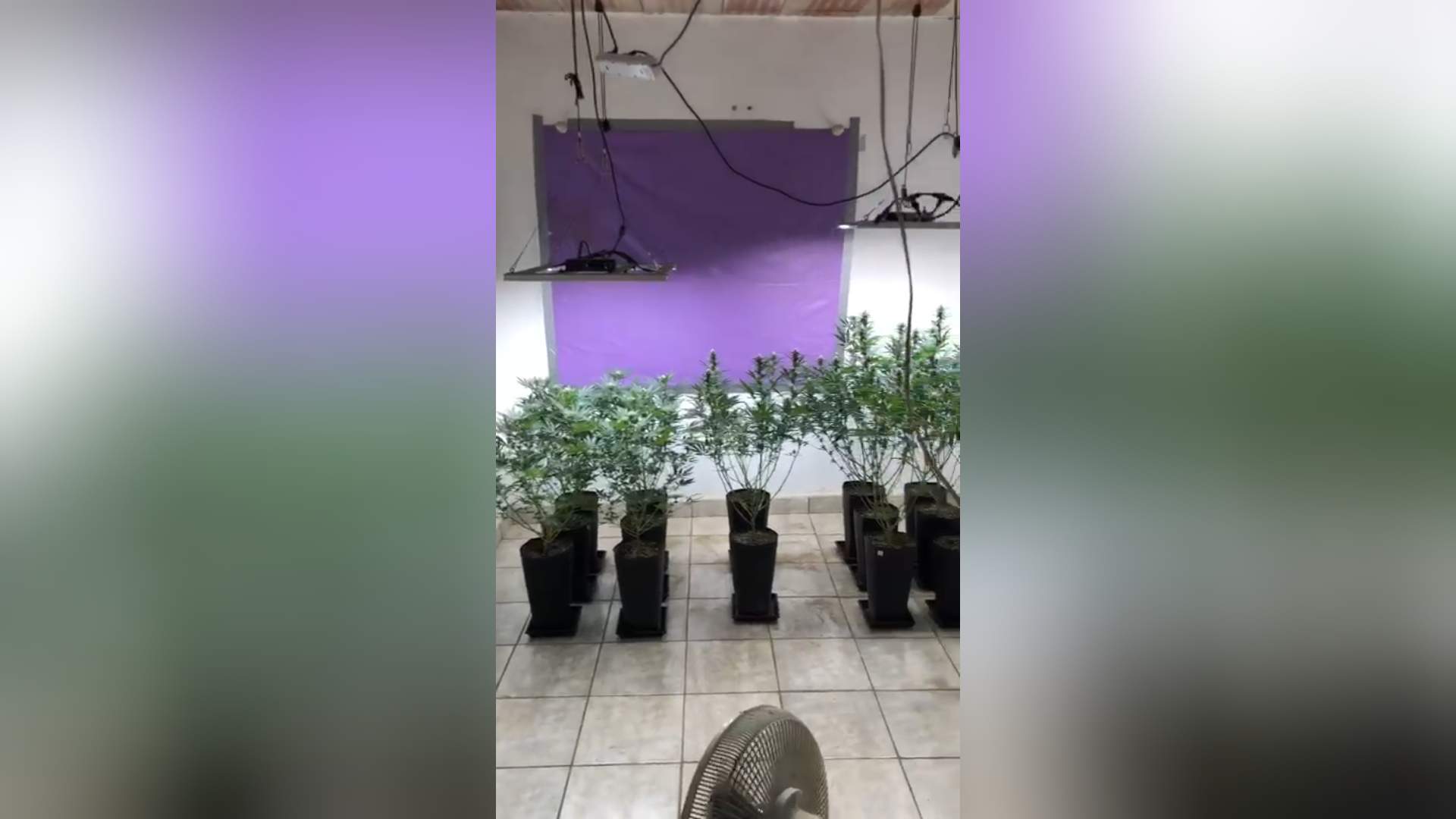 No local, as equipes localizaram em uma residência 56 pés de maconha, além de estufas, iluminação e refrigeração para o cultivo das plantas.