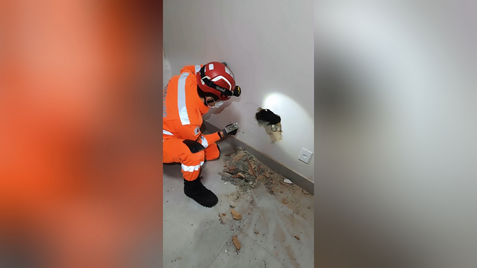 Assim, foi necessário romper uma das paredes para acessar o animalzinho, preservando sua saúde. Após algum tempo, as equipes conseguiram retirar a cadela, que apesar de cansada, estava bem e foi entregue à responsável.