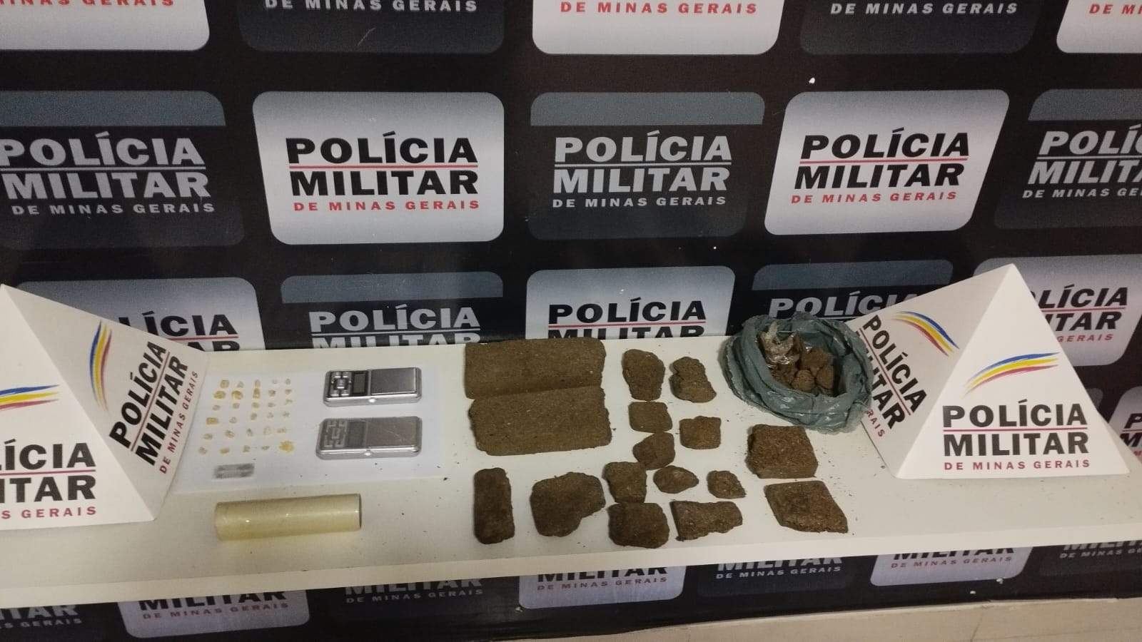 Na residência do autor foram localizadas mais 02 barras e 14 tabletes de maconha, 02 balanças de precisão, 01 bastão de madeira e materiais para embalar as drogas.