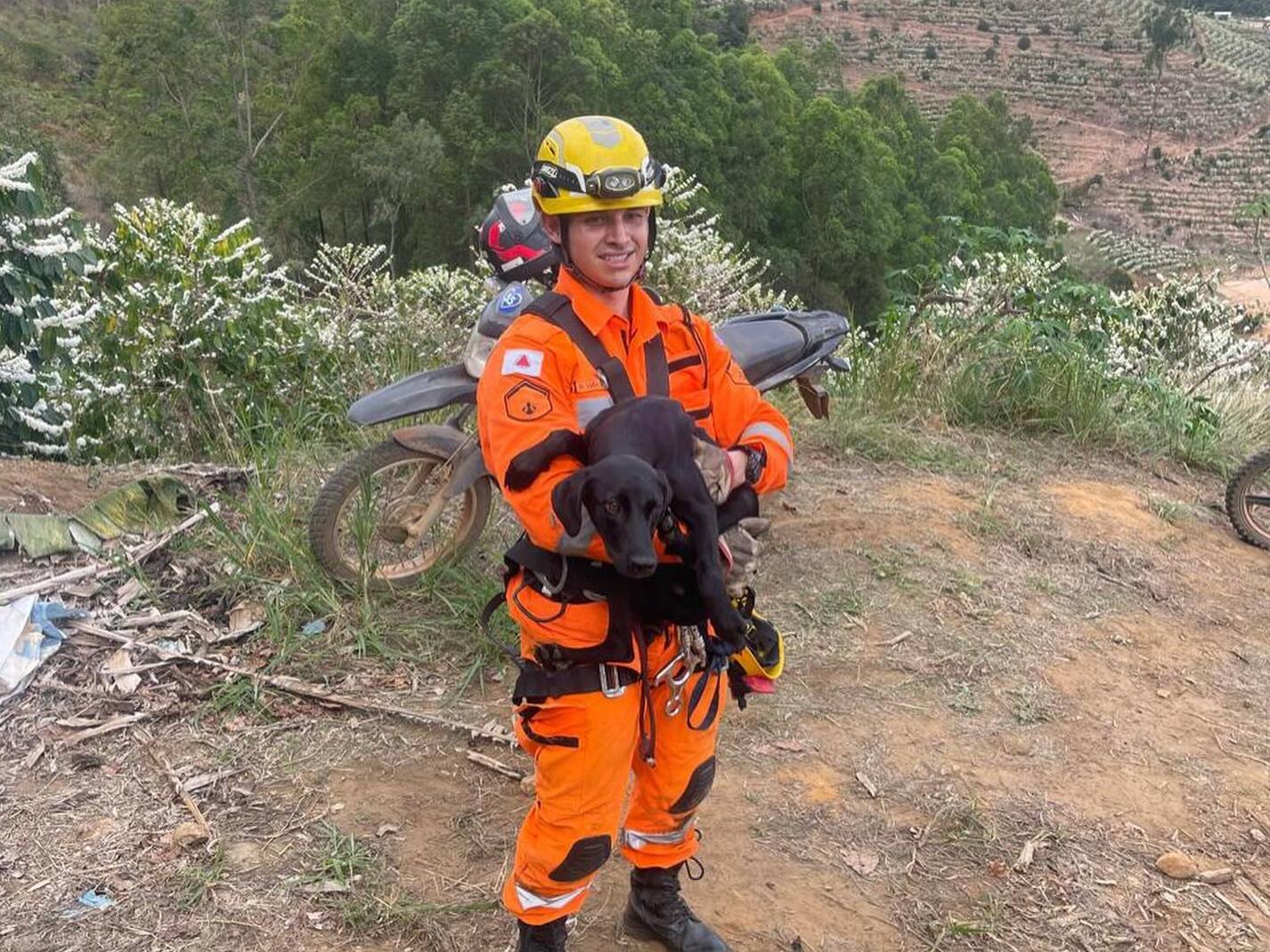 DURANDÉ (MG) - Na manhã de sábado, 19/10, a 2ª Companhia de Bombeiros Militar de Manhuaçu foi acionada para resgatar um cão que estava preso em uma pedreira na zona rural do município de Durandé.