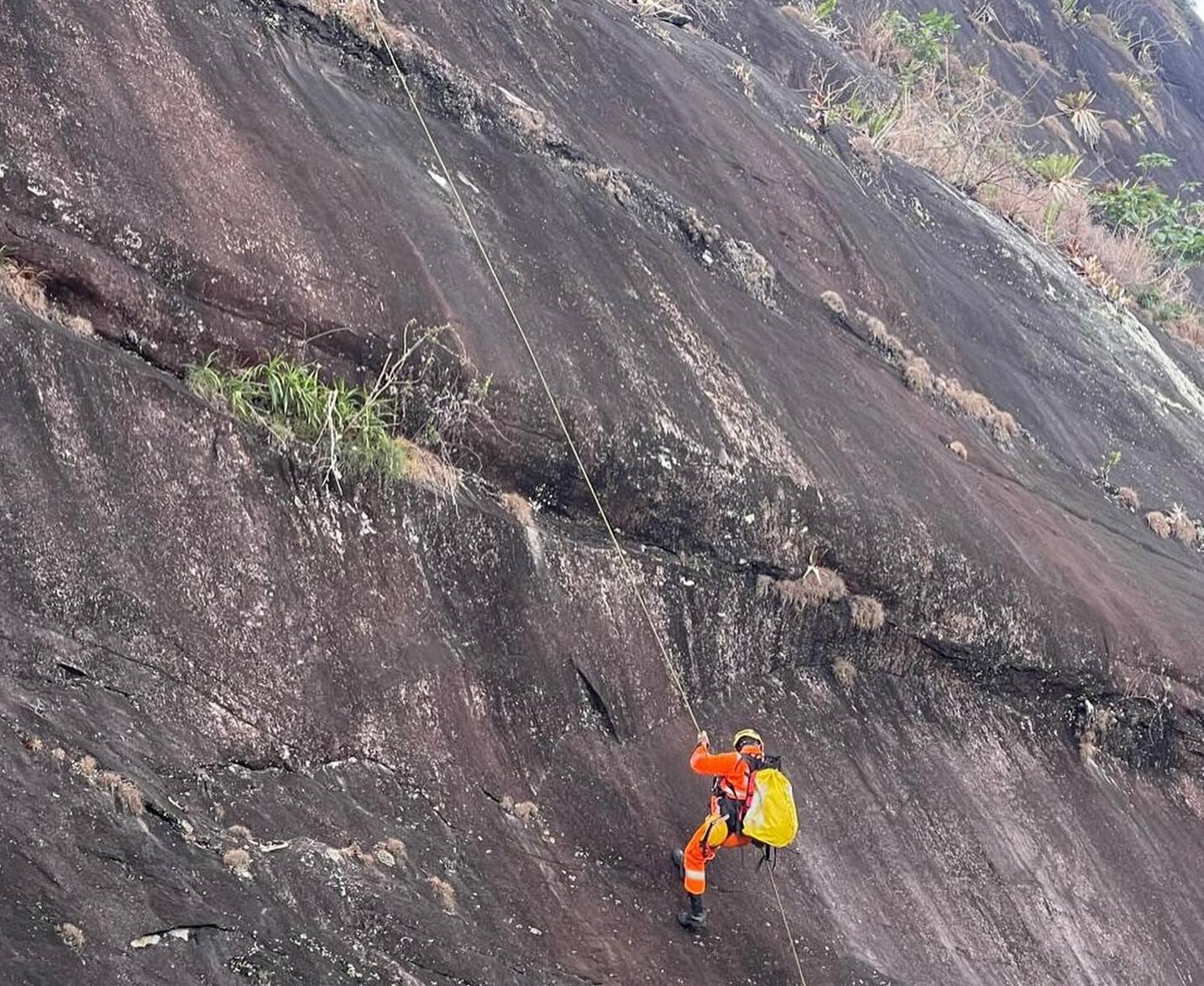 Ao chegar no local os militares da 2ª ala operacional localizaram o cão na fenda de uma rocha a aproximadamente 40 metros de altura.