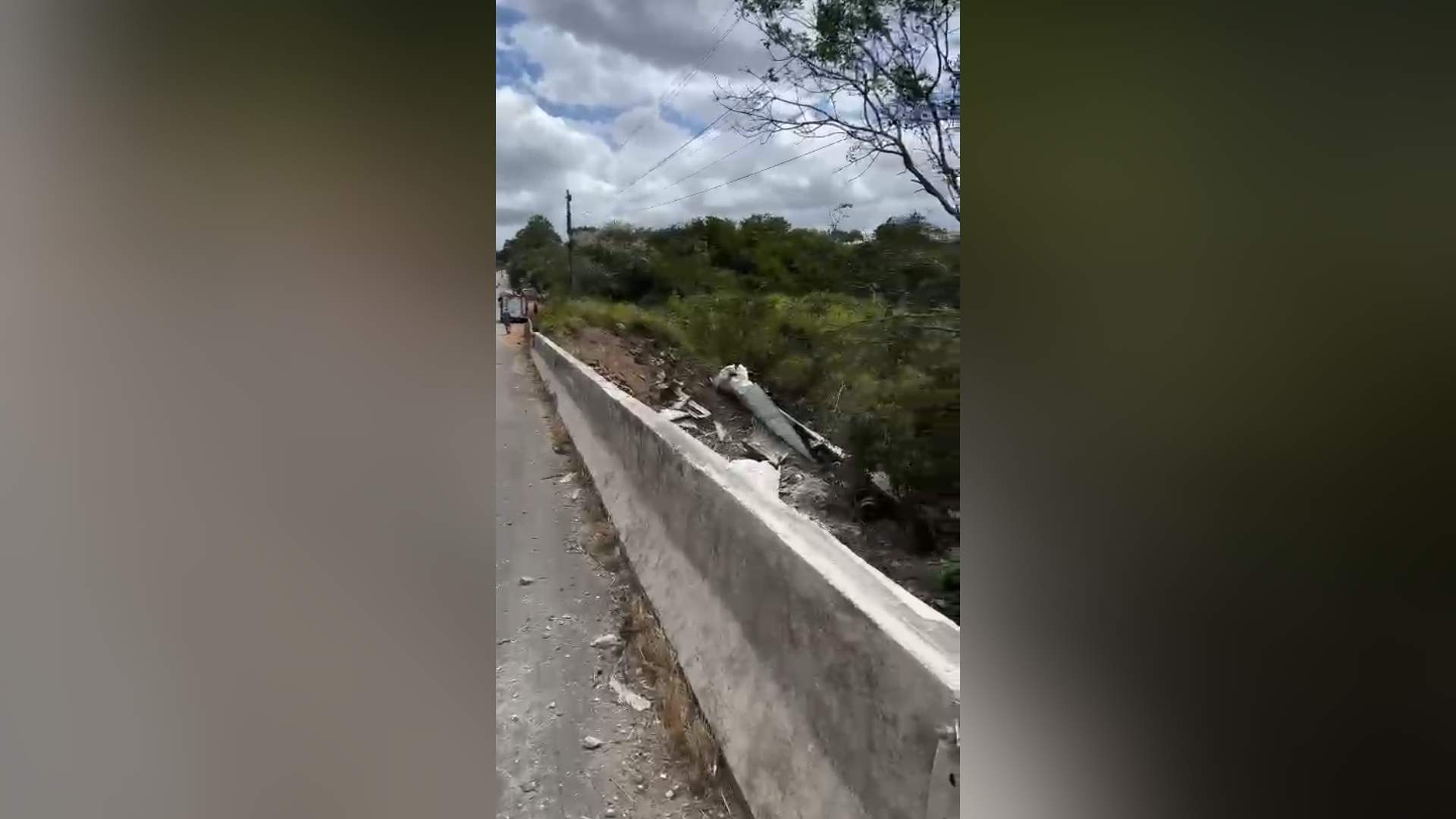 Informações preliminares dão conta que o condutor de um caminhão, de cor branca, perdeu o controle da direção após uma curva. O veículo bateu na mureta de proteção de uma ponte e caiu em uma ribanceira no quilômetro 203. Ainda não se sabe o que teria motivado o acidente.