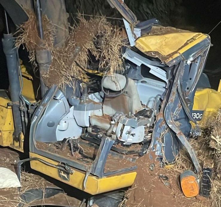 O Corpo de Bombeiros foi acionado e chegando ao local o operador de máquinas já não apresentava sinais vitais. “Após realizarmos uma análise do local e checagem dos sinais vitais da vítima, iniciamos a retirada dele da cabine da escavadeira. Foi necessário o emprego de outra escavadeira para puxar o bloco de raízes que estava sobre a máquina e então acionamos a perícia da Policia Civil que após os trabalhos liberou o corpo para funerária”, explicou Cabo BM Wesley.