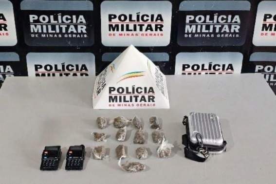 Com a menor foram localizados 13 tabletes de maconha e com o menor dois rádios comunicadores que eram usados para informar a localização das viaturas policiais na cidade.