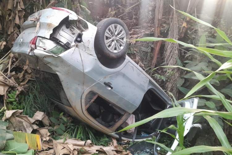 FERVEDOURO (MG) - Duas pessoas ficaram feridas na manhã desta segunda-feira (11) após o motorista perder o controle do carro, colidir contra um poste e capotar em um barranco.