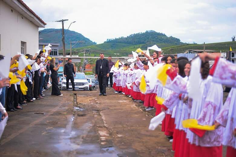 A acolhida foi marcada pela caminhada em frente à igreja e a entrada na matriz de São João Batista, sendo recebido com entusiasmo e carinho. As crianças do coral deram início a recepção com entusiasmo e carinho.