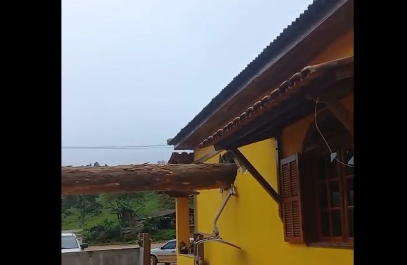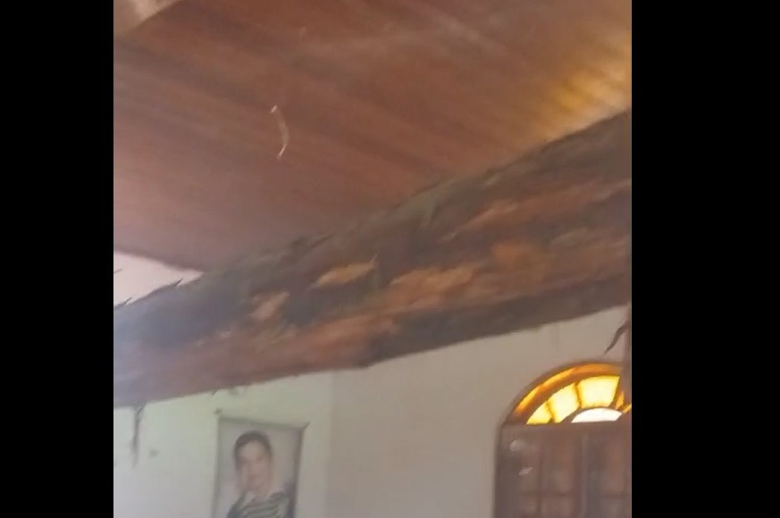 O incidente aconteceu durante o corte da árvore, num pasto próximo à residência. Quando o operador da moto serra finalizou o corte, o eucalipto caiu e escorregou pelo pasto abaixo e atingiu em cheio a casa da família, quebrando parte do telhado, danificando forro, moveis e só parou depois de atravessar toda a casa provocando um enorme buraco na parede.