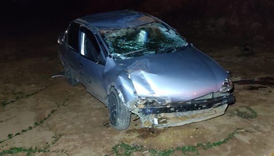 MANHUAÇU: Uma mulher de 34 anos ficou gravemente ferida, após perder o controle da direção do veículo que ela conduzia, atravessar uma cerca, bater num barranco e capotar.