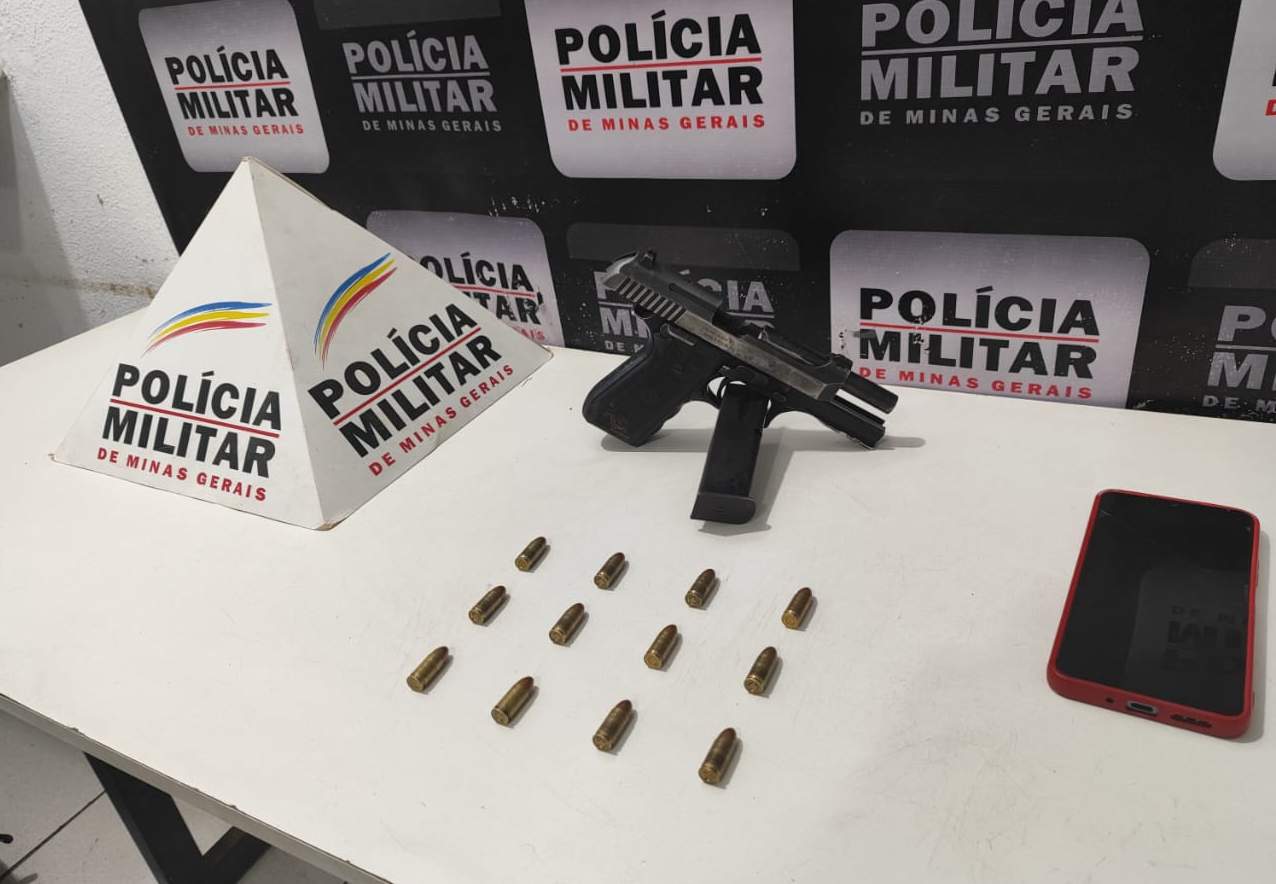 Durante a manobra o passageiro acabou caindo do veículo e ao tentar fugir correndo foi abordado. Durante a busca pessoal foi encontrada 01 pistola calibre 9 mm, com 12 munições.