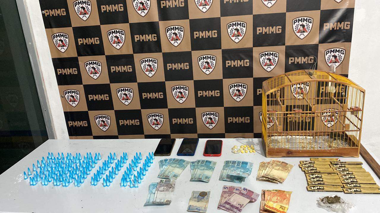 Na sequência, os policiais foram até a residência do suspeito, onde localizaram mais entorpecentes e materiais ilícitos. Ao todo, foram apreendidos 169 pinos de cocaína, 16 comprimidos de ecstasy, R$ 1.568 em dinheiro, três celulares e um pássaro silvestre.