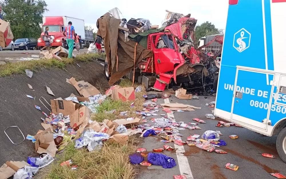 FEIRA DE SANTANA (BA) - Uma batida entre dois caminhões deixou duas pessoas mortas na manhã desta quinta-feira (2), no km 467 da BR‑116, em Santo Estevão, a 41 km de Feira de Santana. Um dos caminhoneiros é de Manhuaçu.