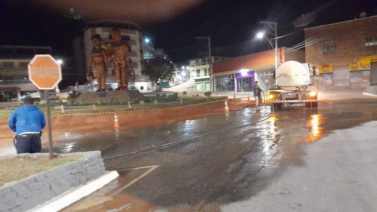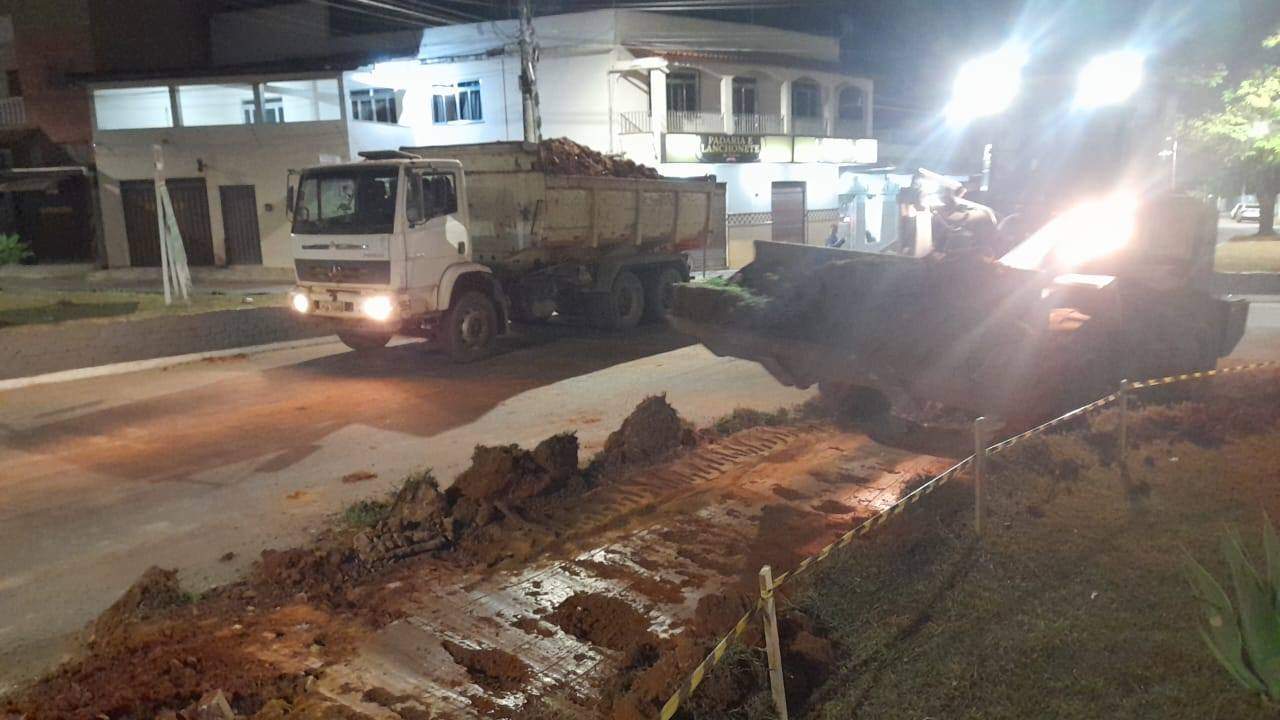 Na madrugada desta sexta-feira (3), equipes da Secretaria de Obras avançaram nos trabalhos com o corte, retirada de terra, lavagem e sinalização da área.
