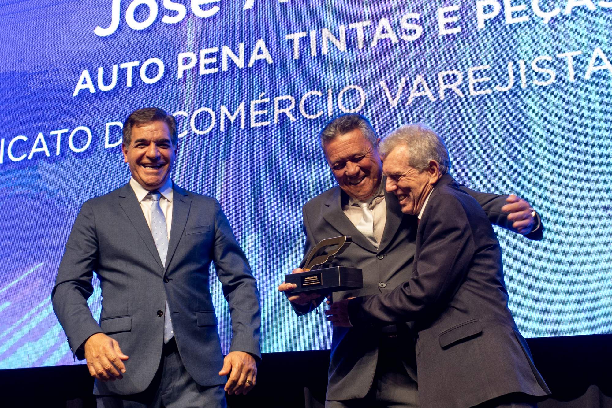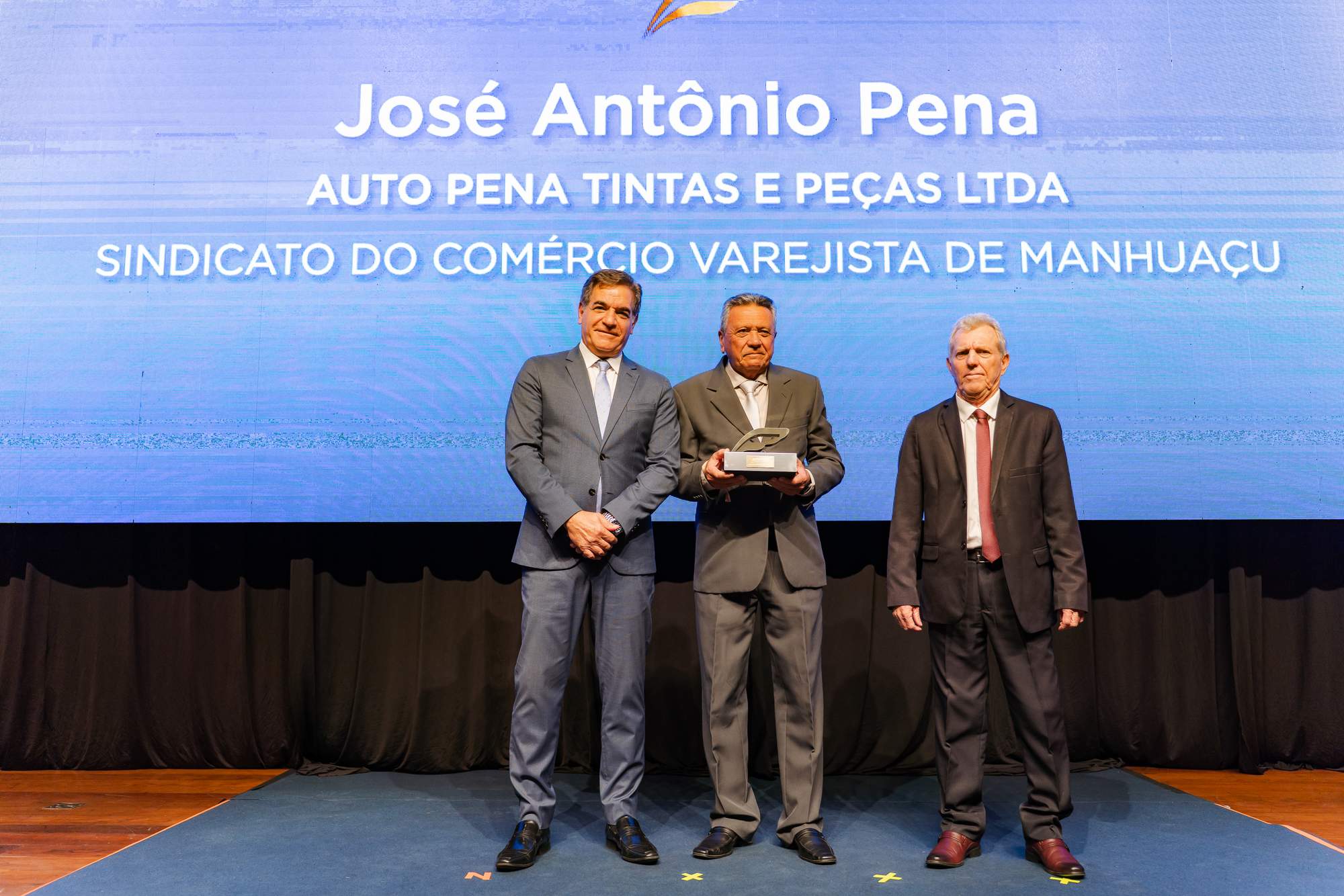 BELO HORIZONTE (MG) - O empresário José Antônio Pena, Auto Pena Tintas e Peças, de Manhuaçu, recebeu o prêmio Destaque do Ano da Fecomércio MG, em cerimônia realizada em Belo Horizonte, na quinta-feira, 02/10. Acompanhado do presidente do Sindicomércio Manhuaçu, Henrique César, o empresário recebeu a homenagem com o Prêmio Mercúrio das mãos do presidente do Sistema Fecomércio Nadim Donato.