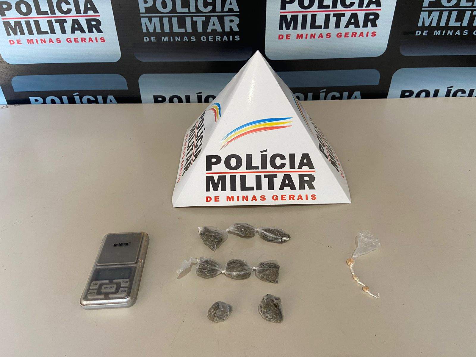 Com ele, os militares encontraram oito buchas de maconha, três pedras de crack, uma balança de precisão e um celular.