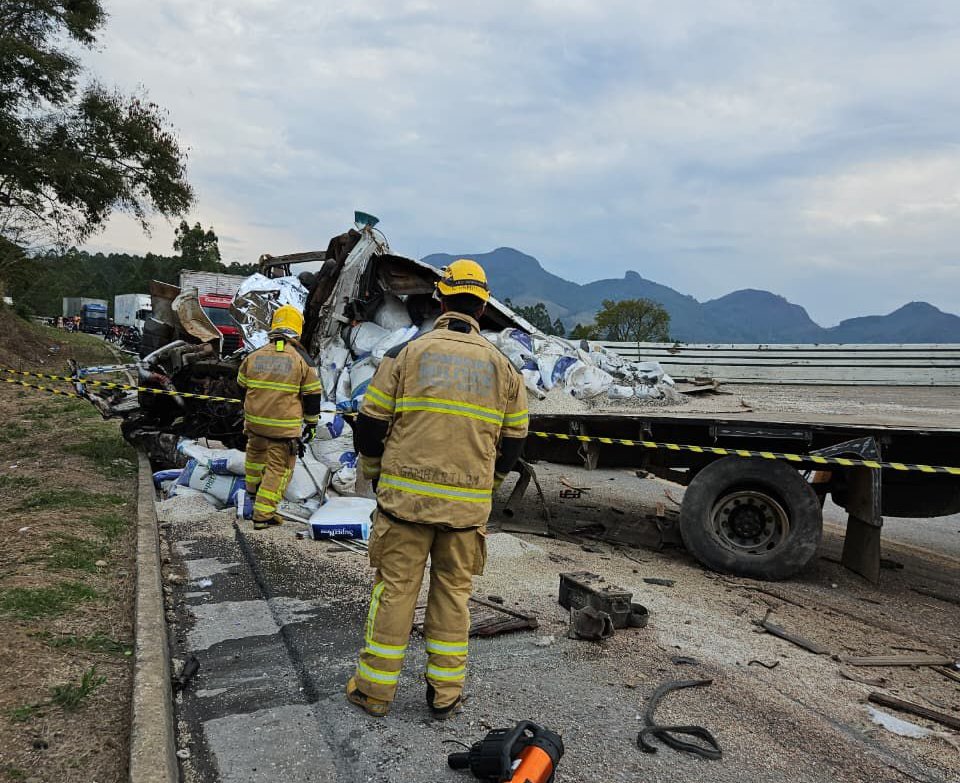 A carreta envolvida no acidente transportava fertilizantes. As causas da colisão ainda serão investigadas.