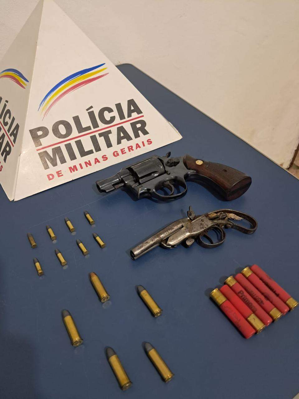 A Polícia Militar chegou até o local após receber informações de que o suspeito mantinha armas em casa. Com a autorização do morador, os policiais realizaram buscas no imóvel e localizaram um bornal escondido sob a cama, contendo um revólver calibre 38, uma garrucha calibre 22, além de cinco munições calibre 38, seis munições calibre 36 e oito munições calibre 22.
