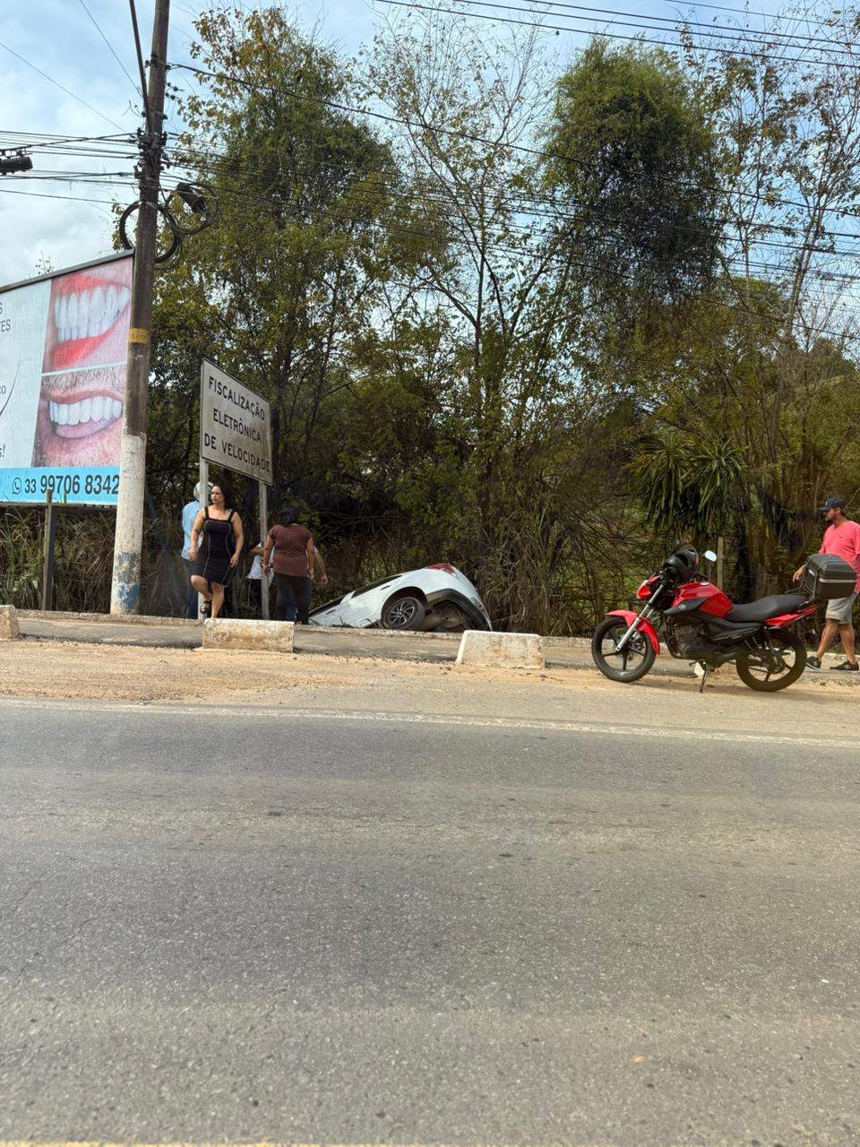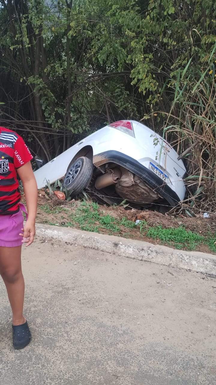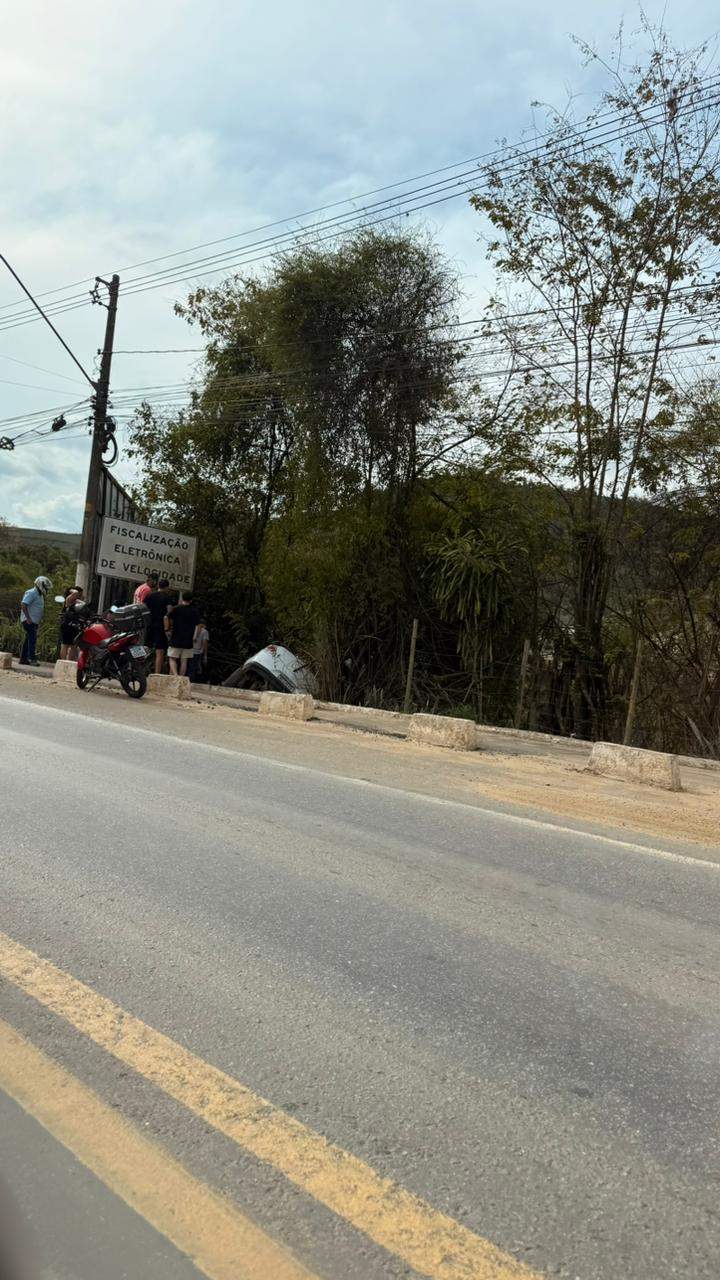 MANHUAÇU (MG) - Um veículo saiu da pista e quase caiu no leito de um rio na tarde deste domingo (02/11), na altura do km 40 da BR-262, próximo à concessionária Nissan, no bairro Ponte da Aldeia, em Manhuaçu.