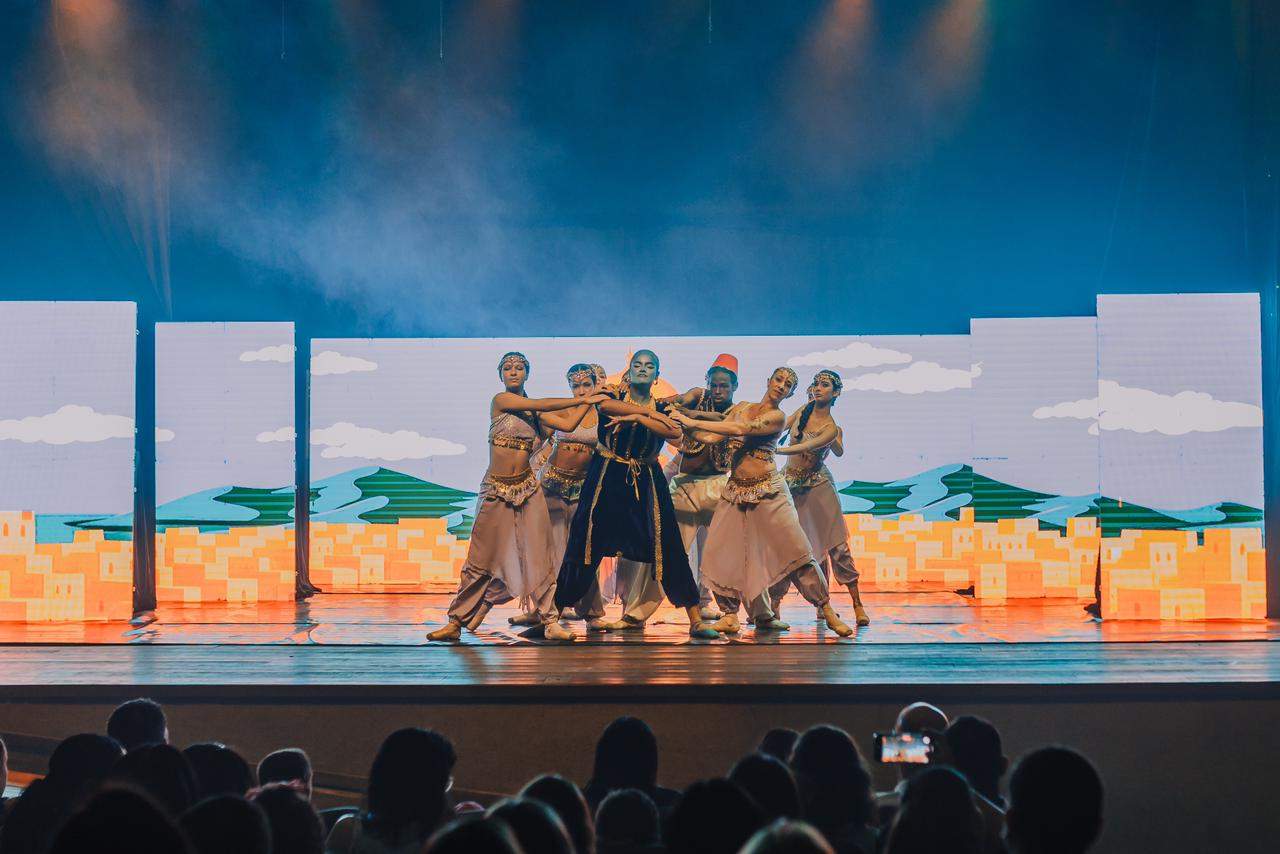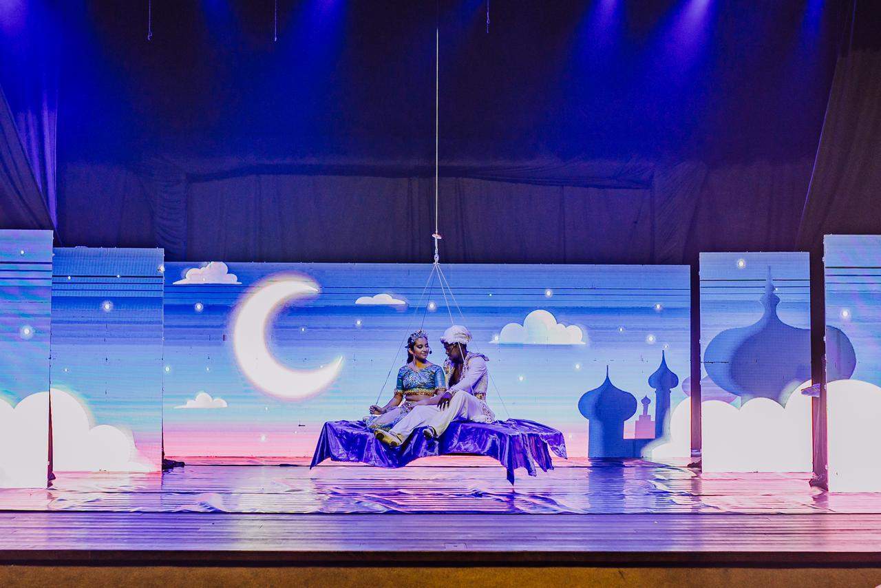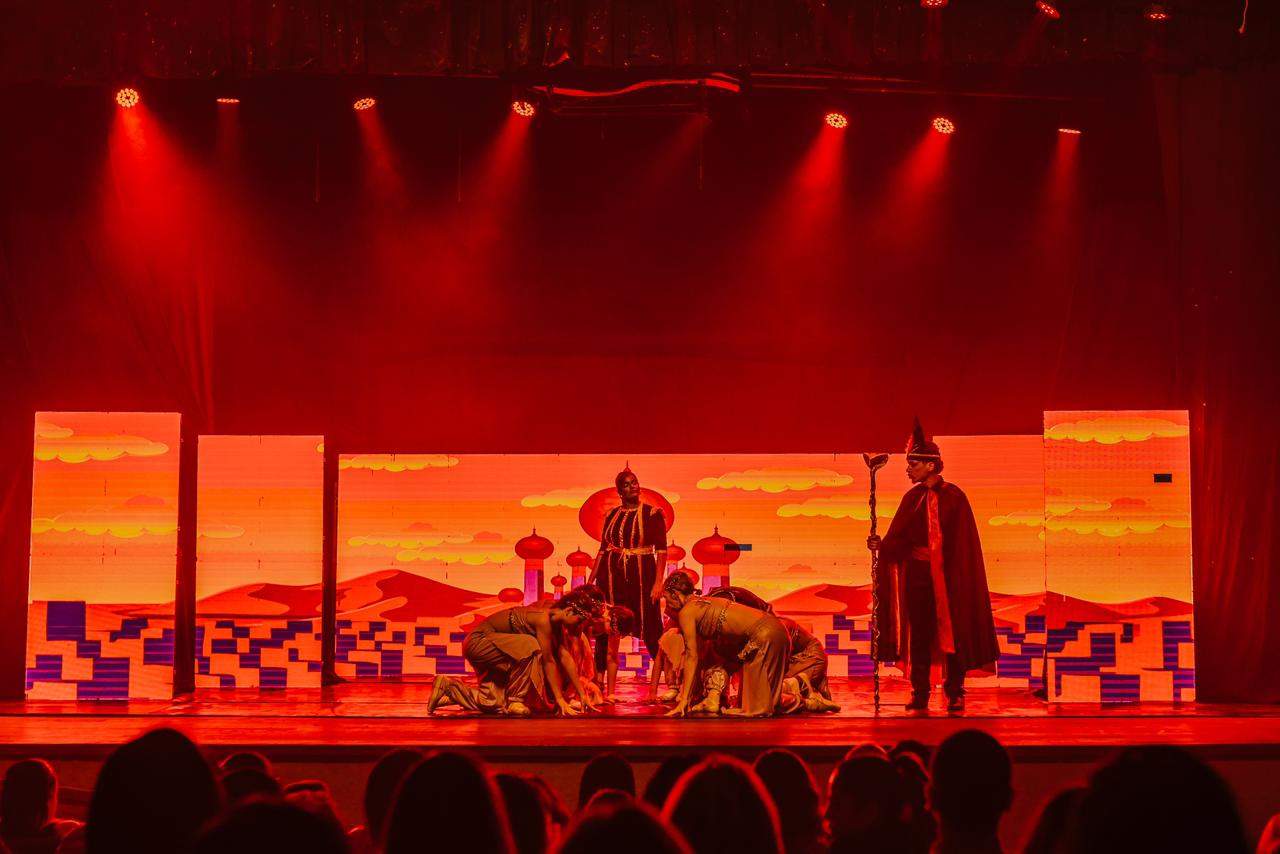 Neste ano, o espetáculo trouxe uma estrutura ainda mais grandiosa, com momentos que surpreenderam o público — entre eles, a cena em que o tapete de Aladdin e Jasmine “voou” pelo palco, arrancando aplausos e encantamento da plateia.