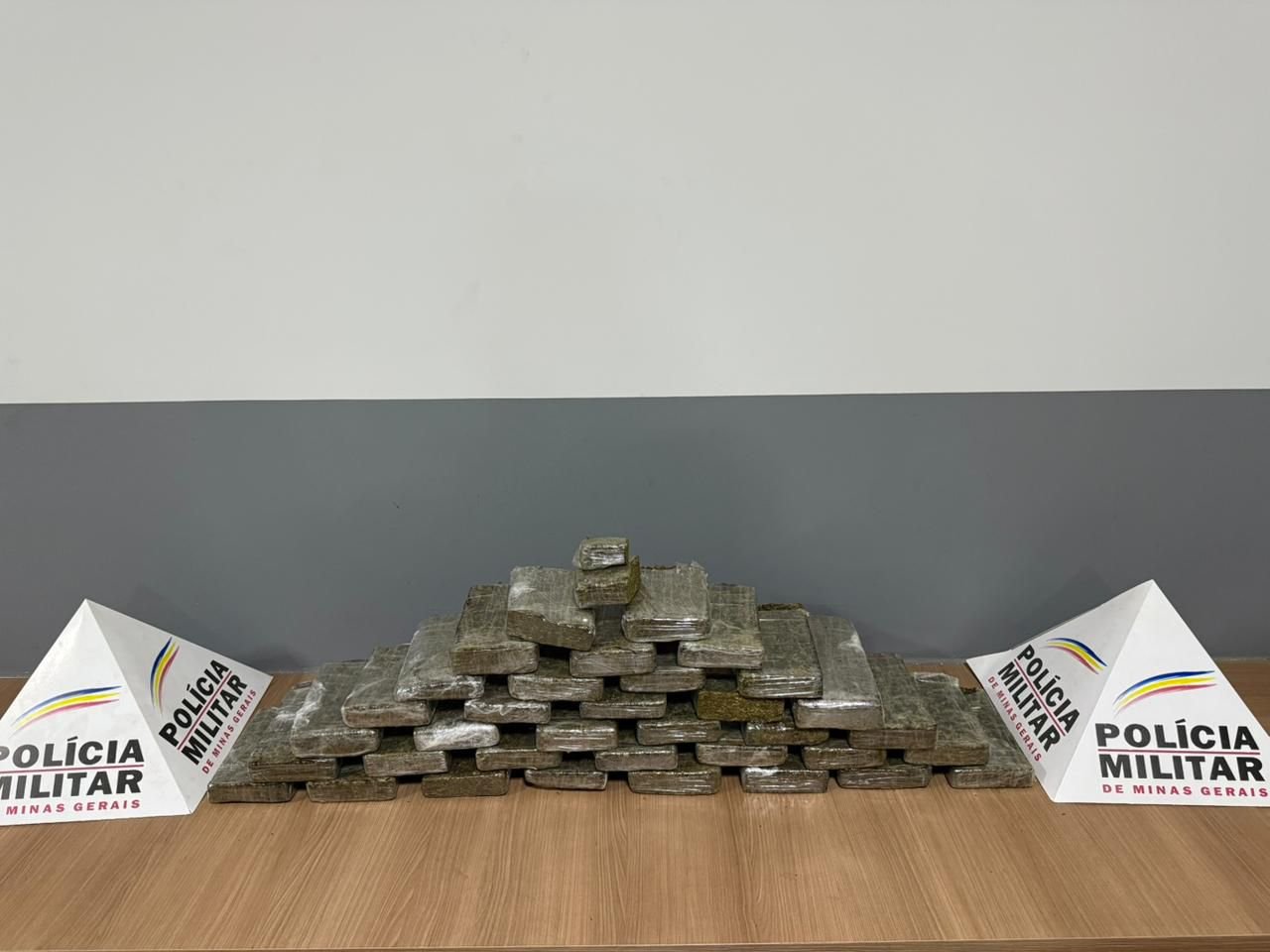 No interior do carro foram encontradas 34 barras e três tabletes de maconha, além de um telefone celular. O material foi apreendido.