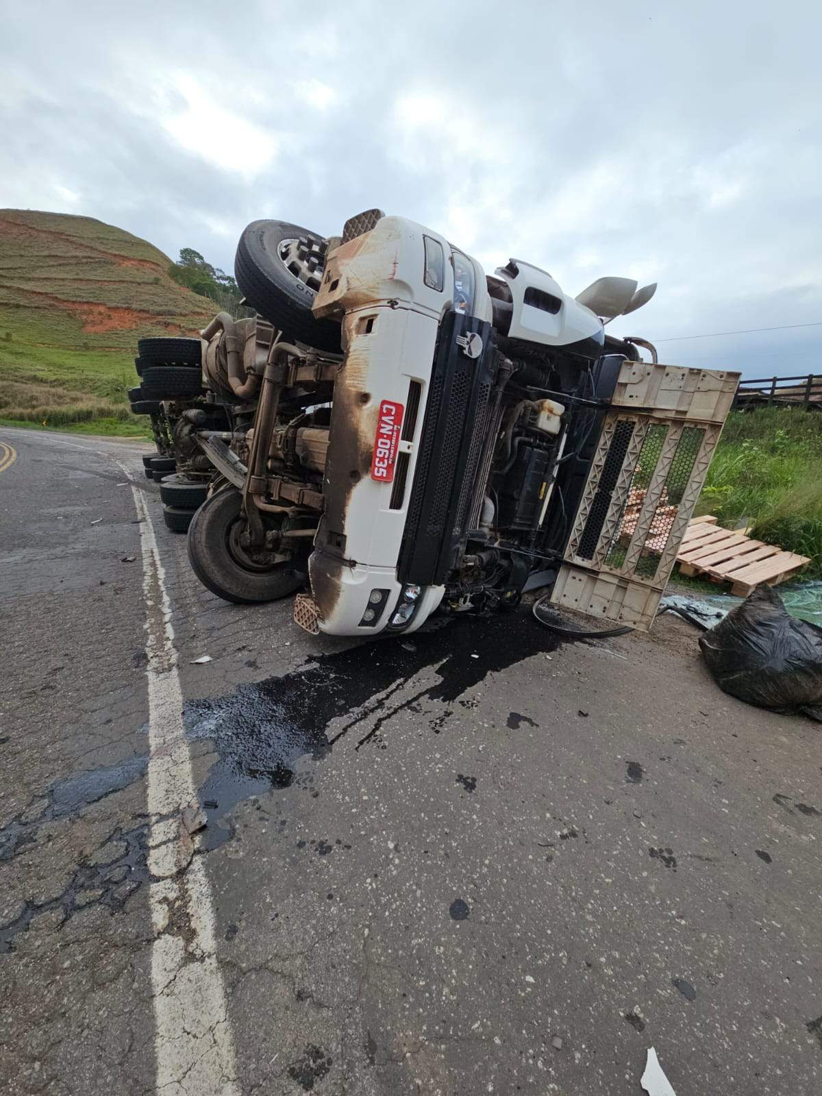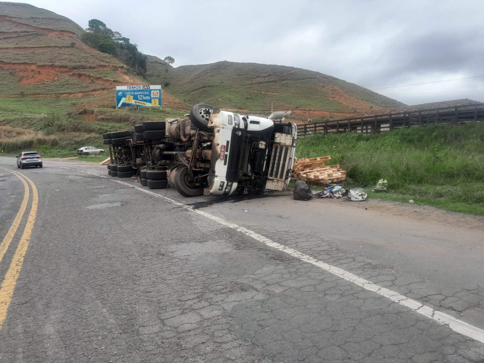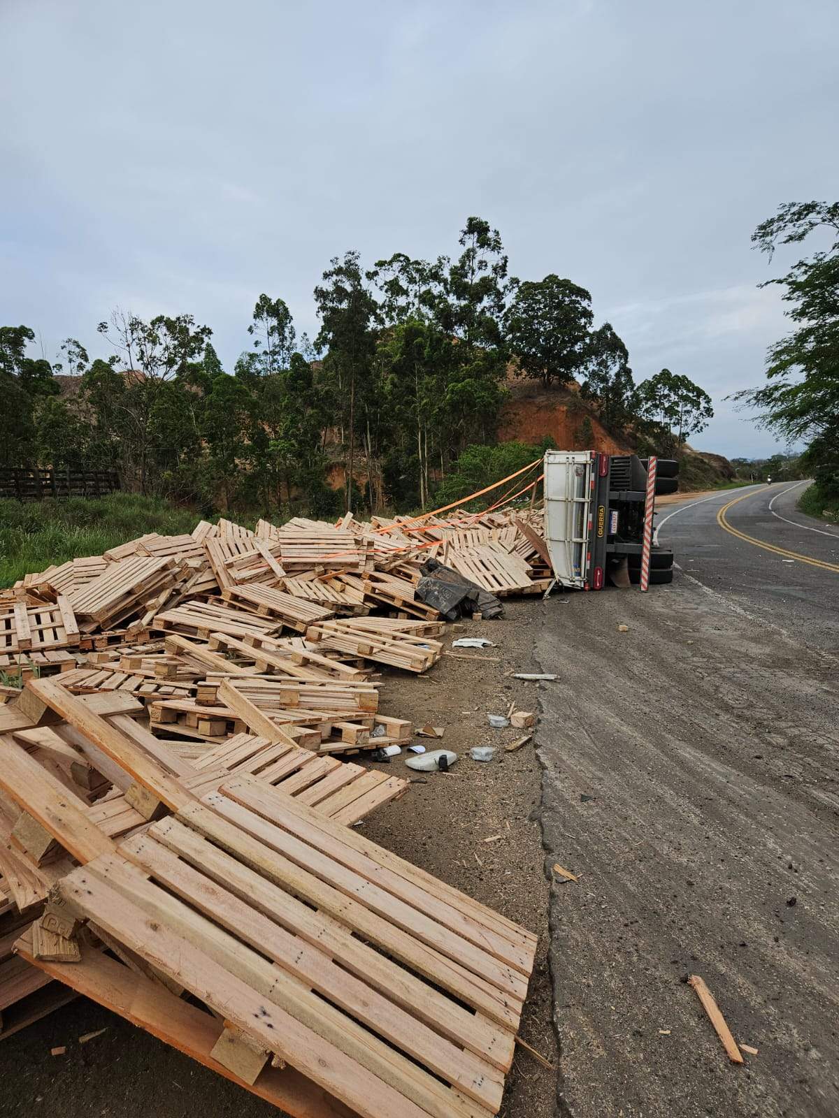 MATIPÓ (MG) - Um motorista sofreu escoriações após a carreta que conduzia sair da pista e tombar no acostamento da BR-262, na altura do km 63, próximo ao distrito de Santo Amaro de Minas, na manhã desta segunda-feira (11). O veículo transportava paletes no momento do acidente.