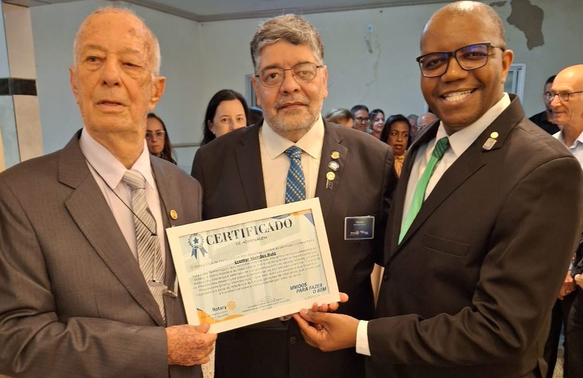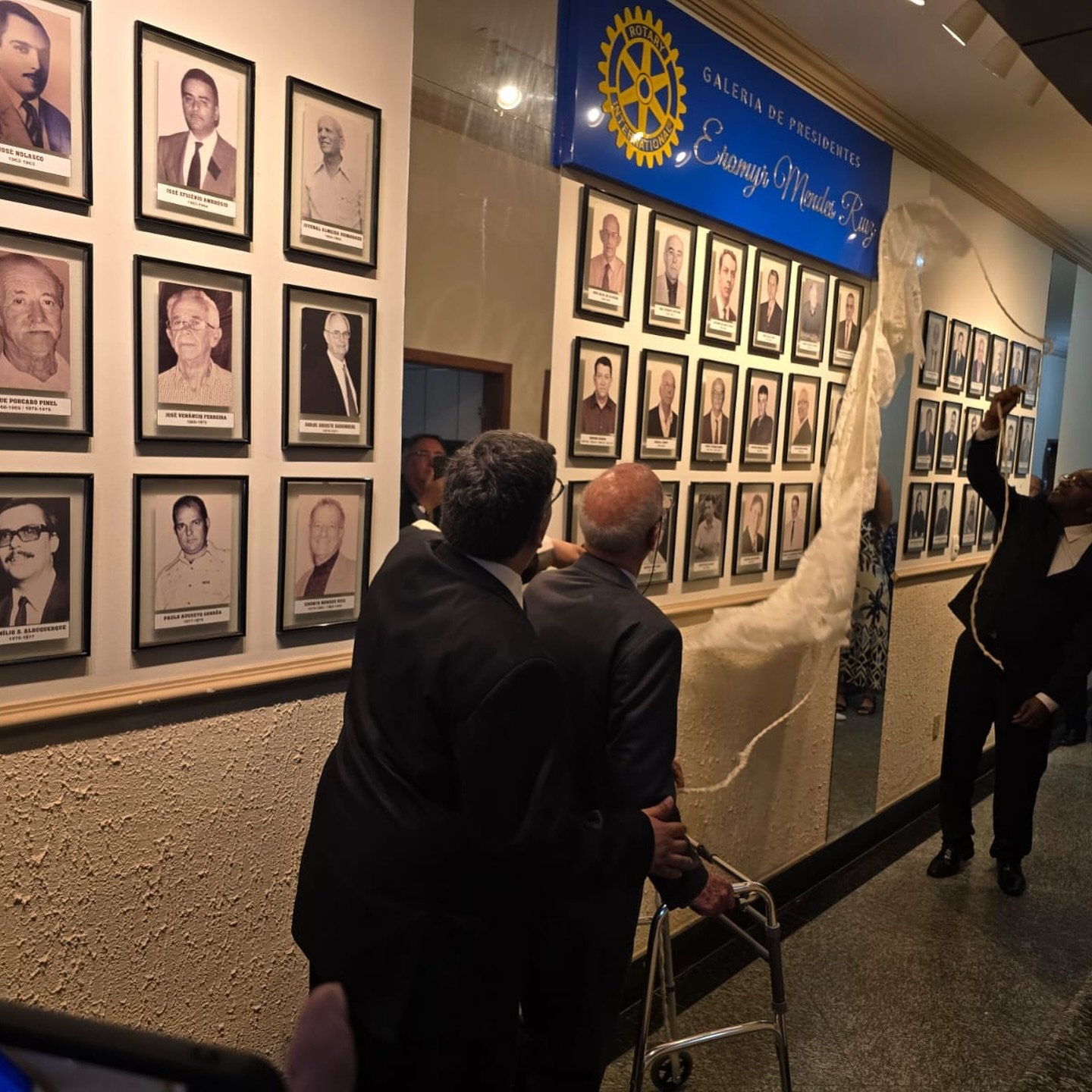 A noite também foi marcada pela inauguração da Galeria de Presidentes “Eromyr Mendes Ruiz”, uma homenagem justa a um rotariano exemplar que contribuiu de forma marcante para a história do clube. Eromyr recebeu um certificado de reconhecimento e foi calorosamente aplaudido pelos presentes.