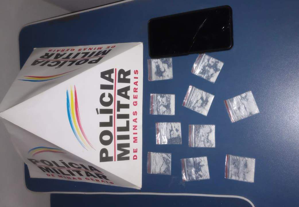 Com o adolescente, foram encontrados 10 papelotes de cocaína e um aparelho celular. Ele foi encaminhado à Delegacia de Polícia, juntamente com o material apreendido, para as providências legais.