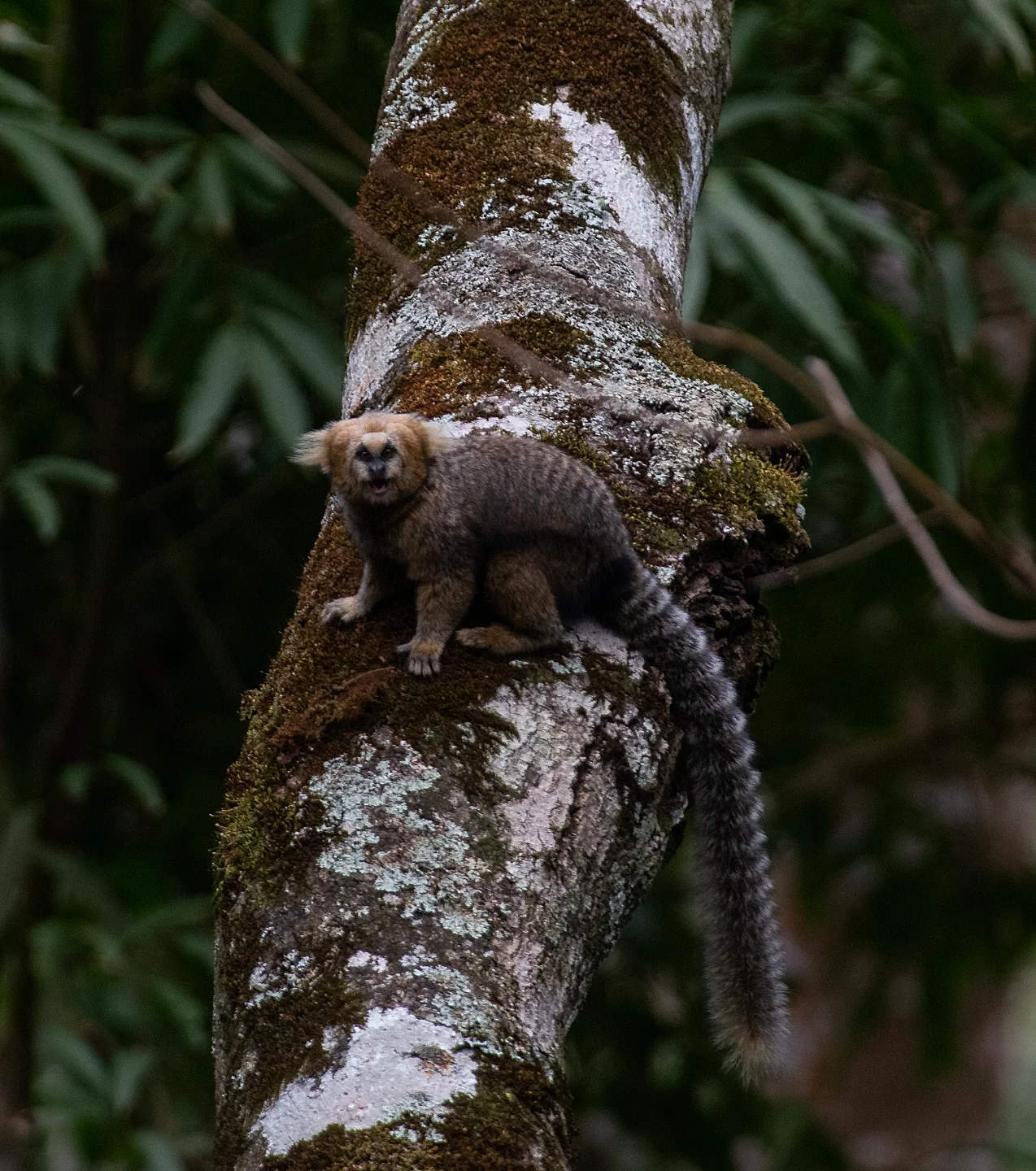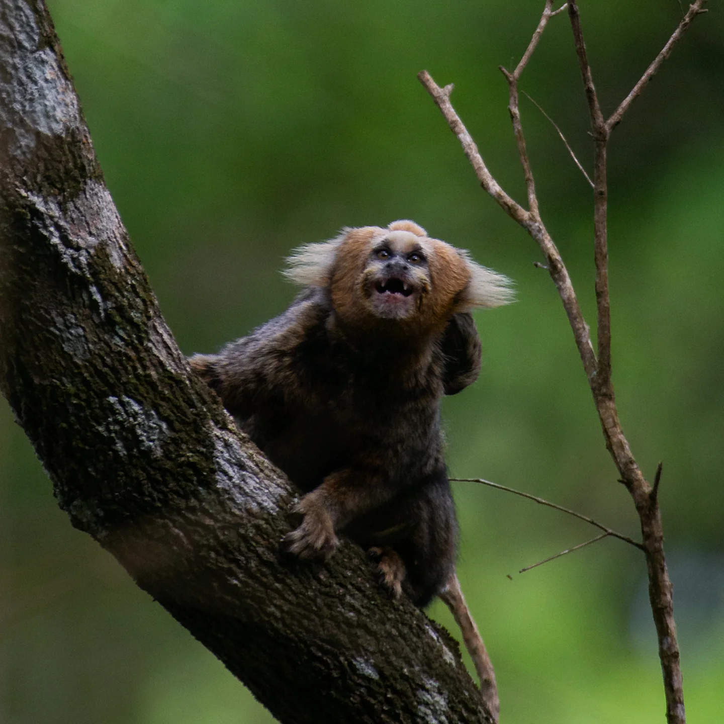 SIMONÉSIA (MG) - Após quase uma década sem registros, o sagui-da-serra (Callithrix flaviceps), primata ameaçado de extinção, foi reencontrado na região do Córrego do Palmeiras, nas proximidades da RPPN Sossego do Muriqui, no município de Simonésia, de propriedade do Grupo Curimbaba.