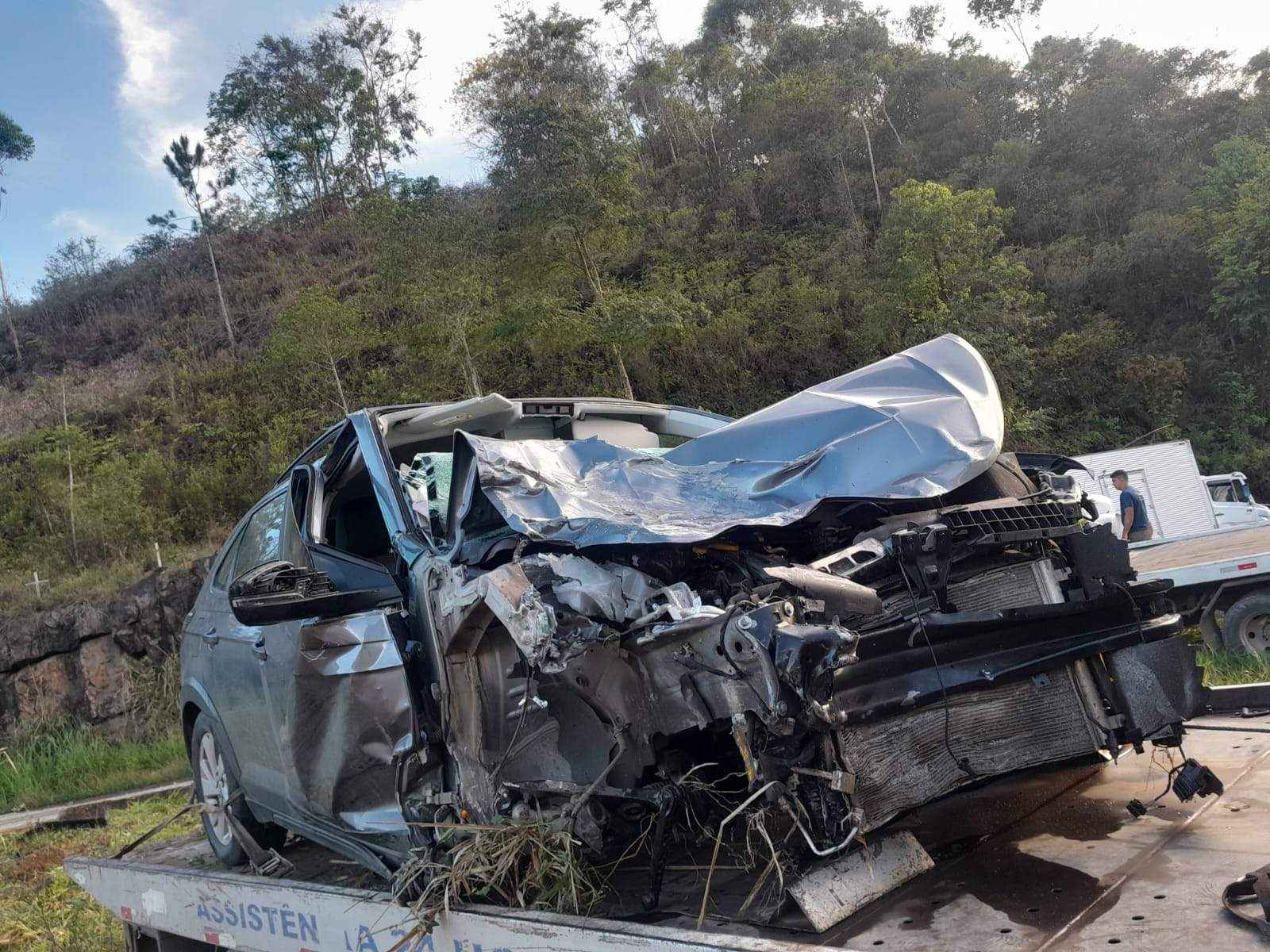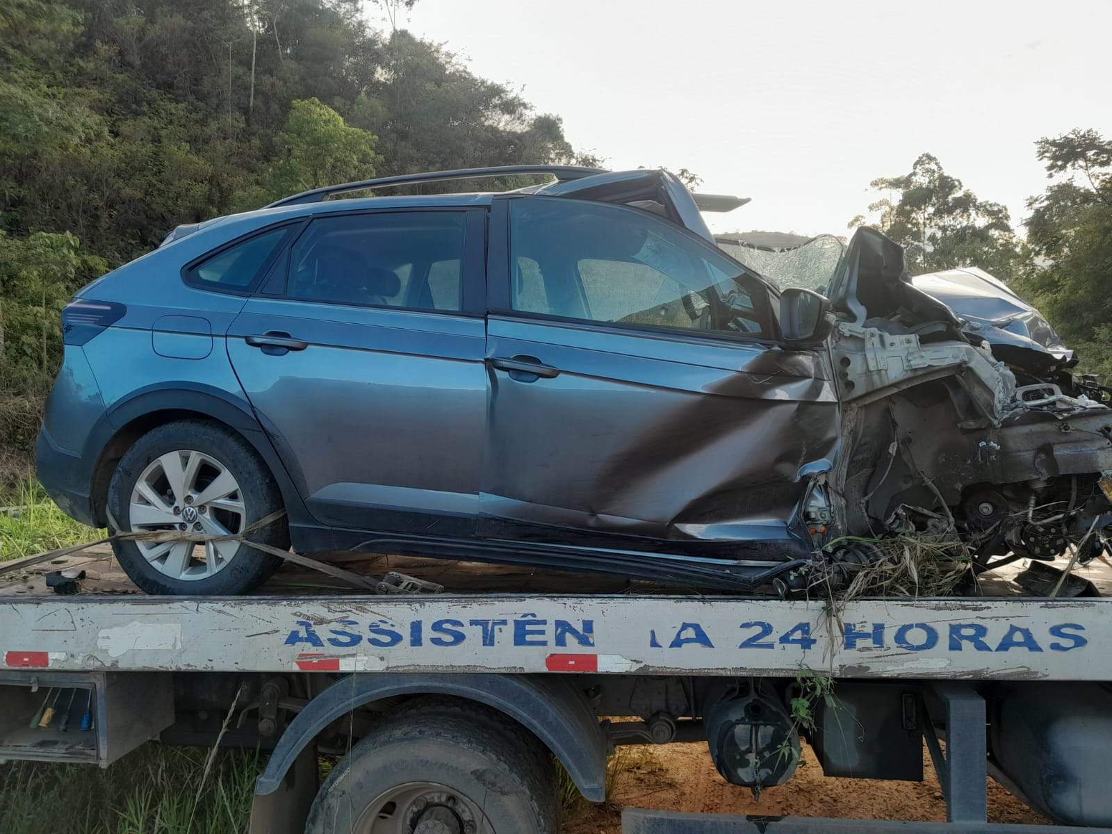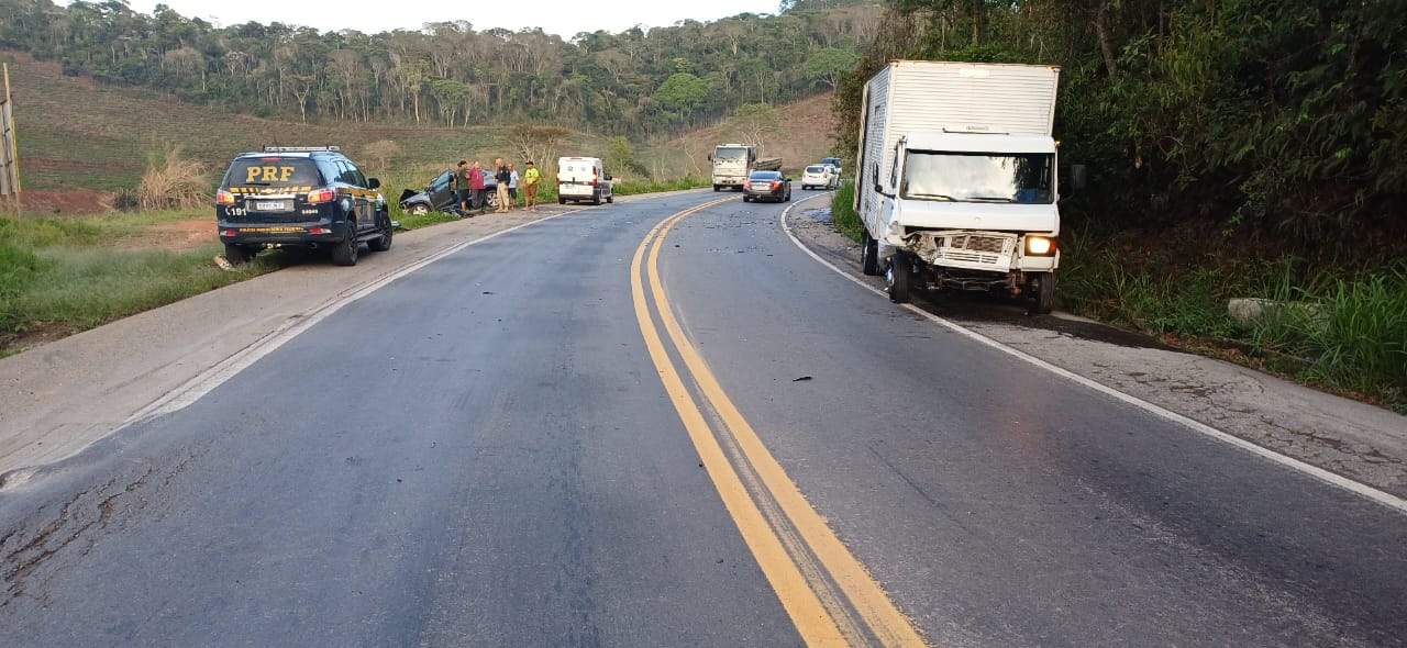 Segundo a PRF, o carro seguia de Manhuaçu para Belo Horizonte, invadiu a pista contrária e bateu de frente com um caminhão.