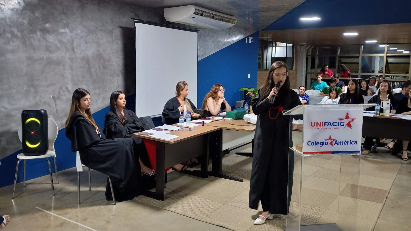 Dra. Marina Itaborahy, Coordenadora do curso de Direito, explicou que ‘É um evento que estamos realizando no curso de Direito, em que as turmas competem entre si no sistema de chaveamento de copa. Hoje, tivemos a final com as duas turmas finalistas. Foi um sucesso! Um sucesso de engajamento, de execução e de adesão à comunidade. Essa oportunidade visa a prática jurídica porque, às vezes, o aluno chega à vida prática, sem nunca ter passado por qualquer experiência desafiadora na vida acadêmica. Então, buscamos oferecê-los a vivência jurídica ao máximo. Ao participar da Copa, eles têm prazo para apresentar, prazo para colocar as provas nas pastas, eles precisam vir e apresentar uma sustentação, então, o quão pudermos prepará-los para o mercado de trabalho, o faremos. Agradeço aos alunos, ao UNIFACIG, para todas as autoridades que aqui estiveram presentes e para essa cobertura que está privilegiando o nosso evento’.