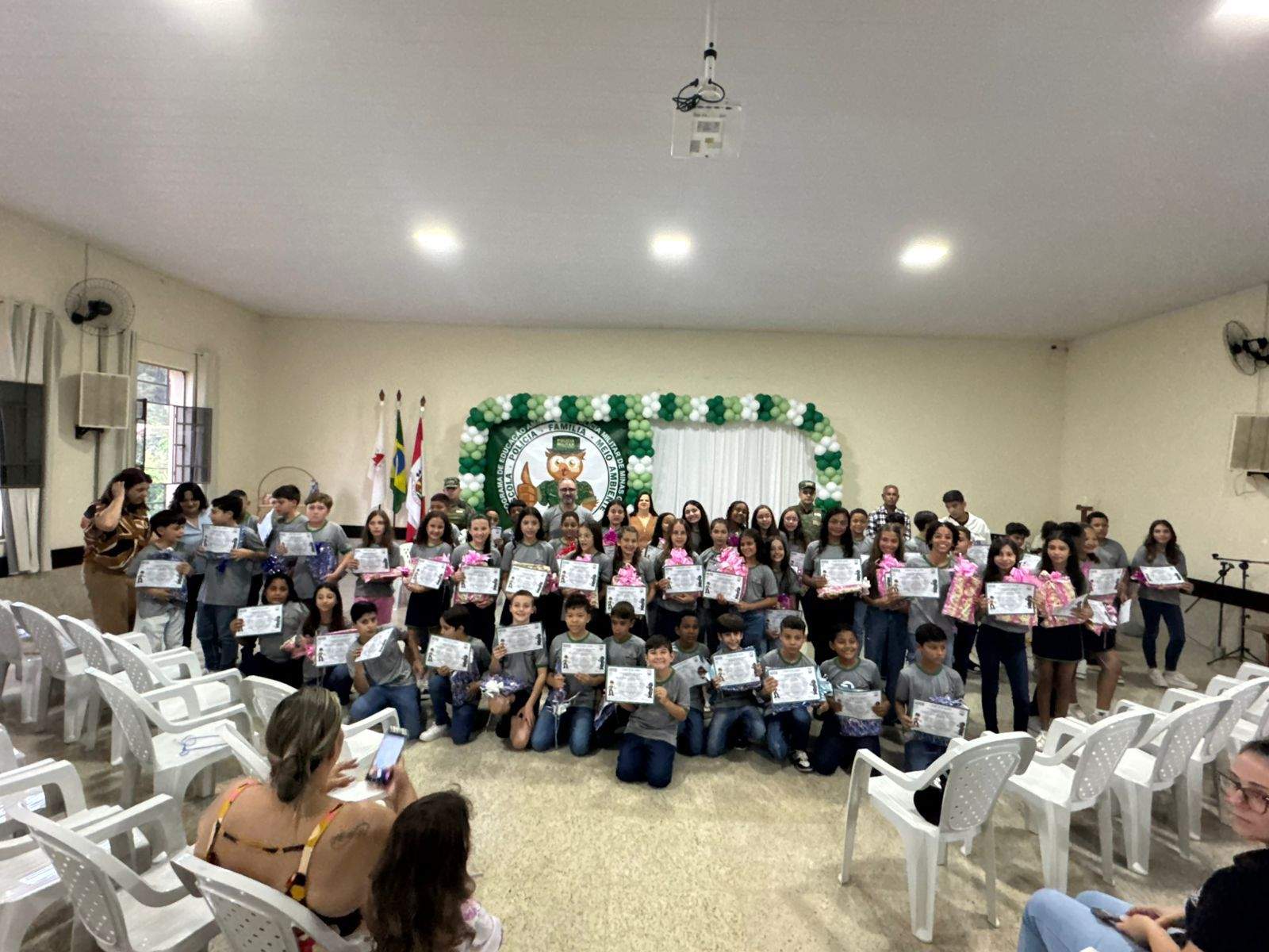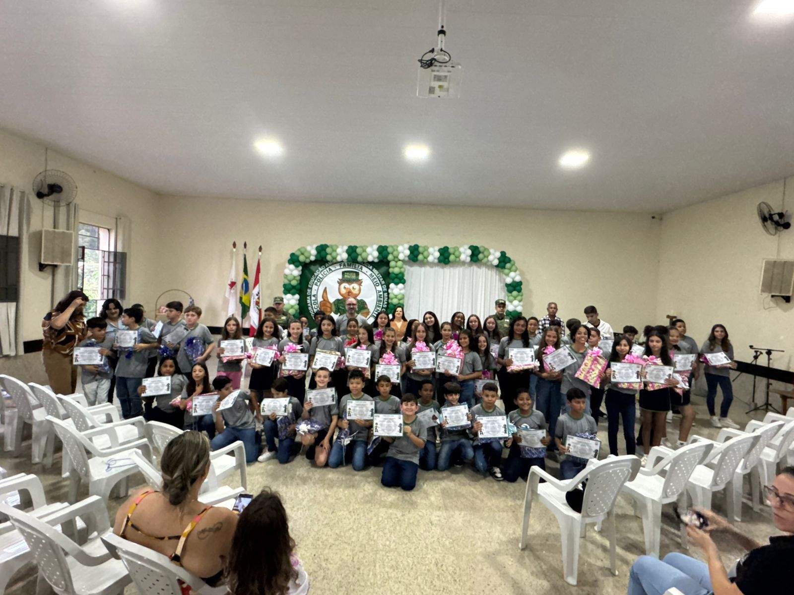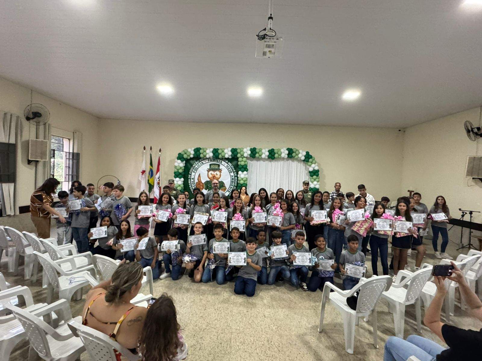 Ao todo, 79 estudantes concluíram o programa. A oradora da turma, a aluna Laís Faria Dutra, representou os formandos com um discurso que ressaltou gratidão, aprendizado e crescimento ao longo da formação. A presença dos familiares reforçou o clima de celebração, evidenciando o apoio e o orgulho de todos na trajetória educacional das crianças.