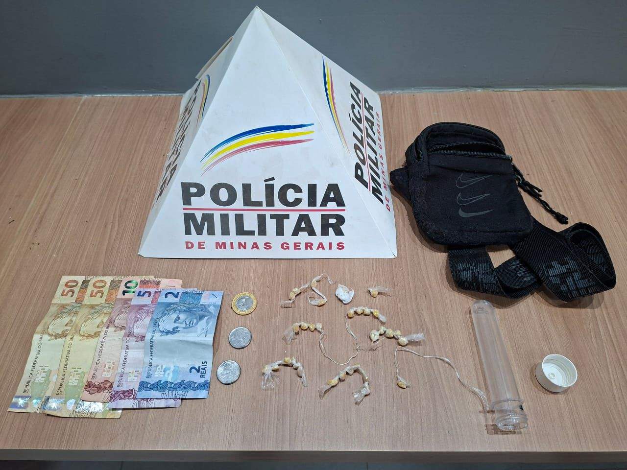Já no bairro Alfa Sul, na Rua Emilton do Vale Lacerda, militares avistaram dois jovens em atitude suspeita. Um deles conseguiu fugir, arremessando uma bolsa em um lote vago. No interior da bolsa, os policiais encontraram 32 pedras de crack e R$119,00 em dinheiro. O suspeito que fugiu não foi localizado, enquanto o segundo, um adolescente de 13 anos, foi abordado, mas nada de ilícito foi encontrado com ele.