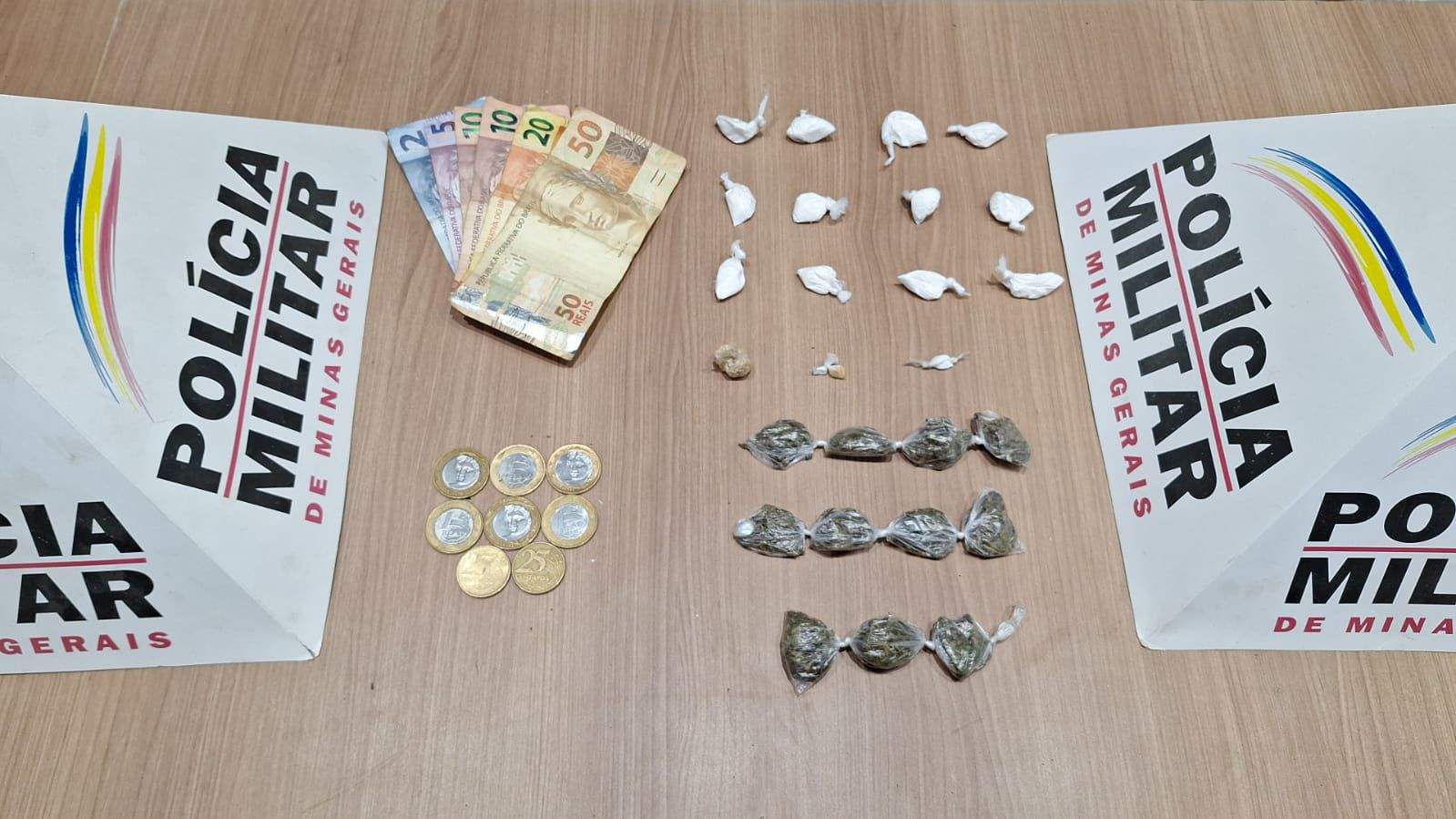 No bairro Bom Pastor, um homem de 35 anos foi detido com uma barra, sete porções e 18 papelotes de cocaína, além de porções de maconha e um celular.