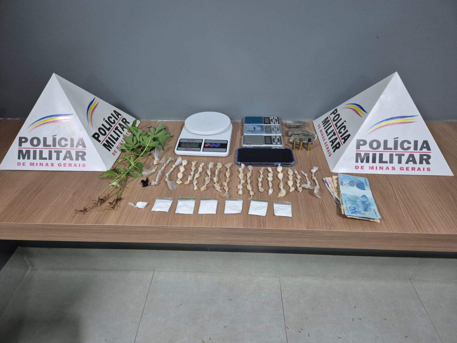Na comunidade Santa Filomena, três homens, dois de 19 anos e um de 24, foram abordados e flagrados com 76 pedras de crack, sete papelotes de cocaína, três pés de maconha, munições calibre 38, quatro balanças de precisão, dinheiro e um celular. Todos foram levados para a Delegacia de Polícia Civil.