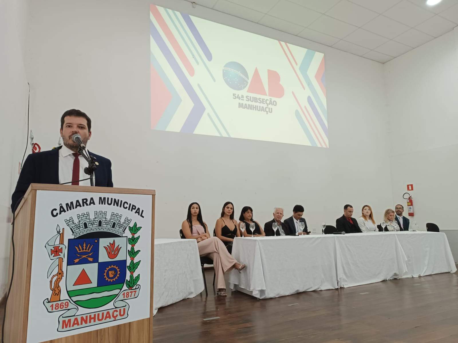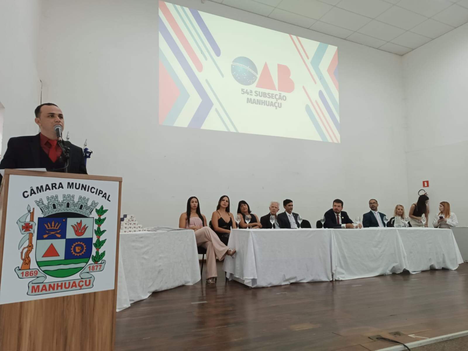 MANHUAÇU (MG) - Na noite dessa terça-feira (25), o anfiteatro da Câmara de Vereadores de Manhuaçu foi palco de um momento singular, para a entrega de carteiras para 22 novos advogados, advogadas e oito estagiários inscritos na OAB-MG. A sessão solene foi presidida pelo presidente da 54ª Subseção OAB/ Manhuaçu, Dr. Glauber Vidal, com a participação do vice-presidente, Dr. Arnaldo Cardosos e membros da diretoria, que receberam os novos operadores do direito em um clima de celebração, acolhimento e muita harmonia.