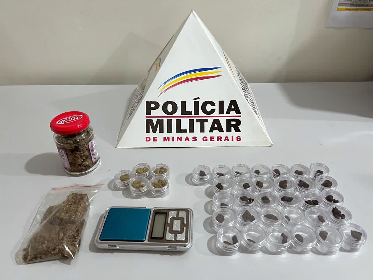Durante as buscas no imóvel, os militares recolheram três tabletes de maconha, 31 frascos contendo haxixe, além de outros recipientes com maconha em diferentes formas, incluindo sementes armazenadas em um pote de vidro. Uma balança de precisão também foi encontrada, reforçando a suspeita de preparo do material para venda.