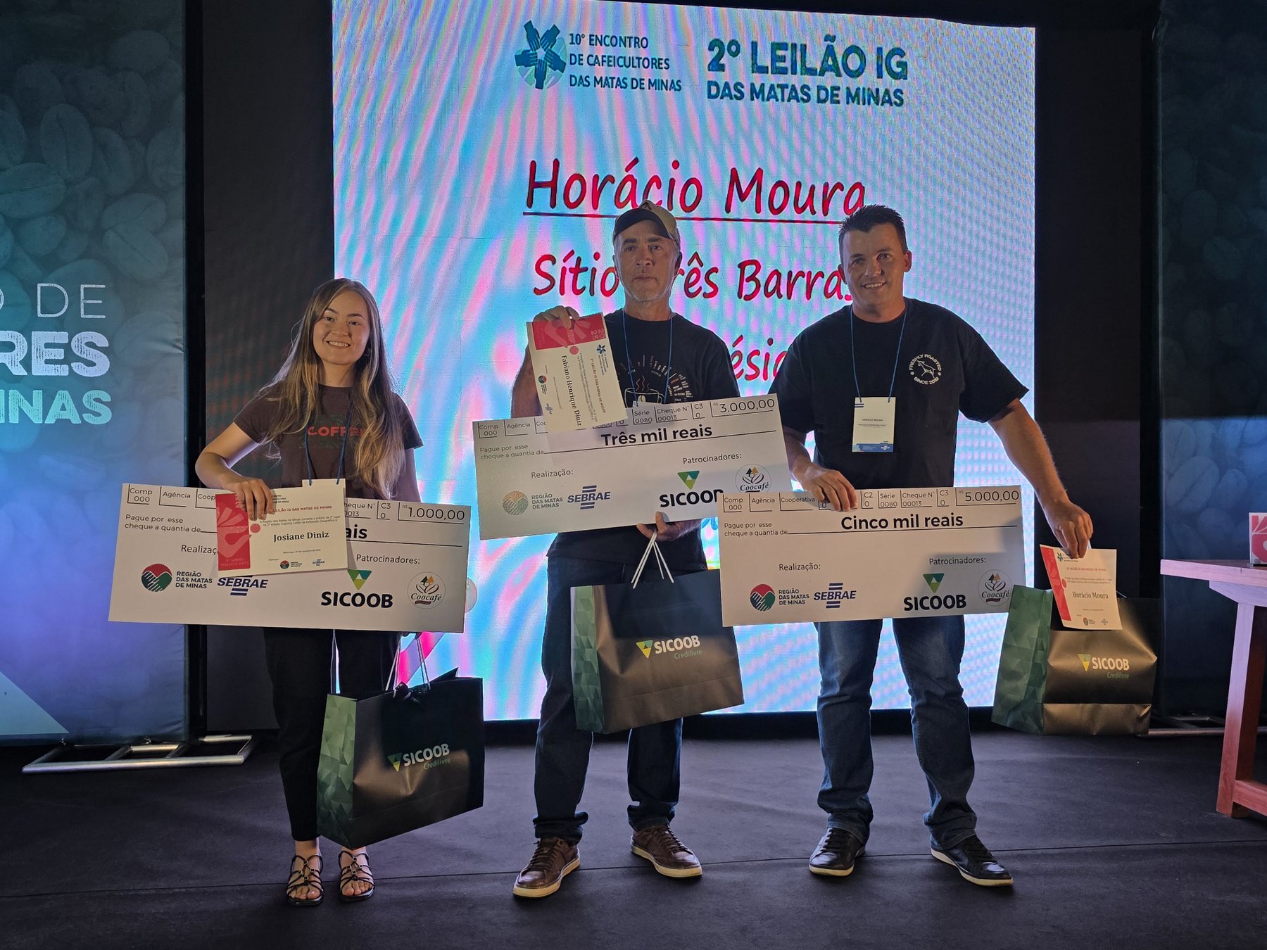 Os três primeiros ainda receberam prêmios de cinco, três e mil reais pela classificação no cupping das Matas de Minas.