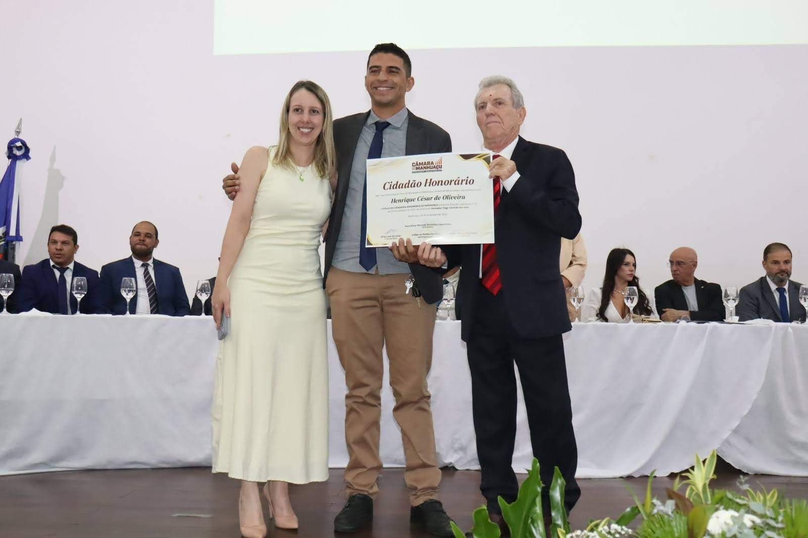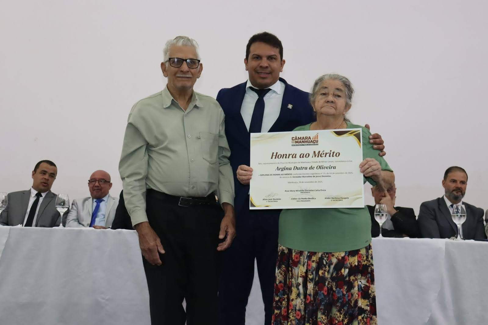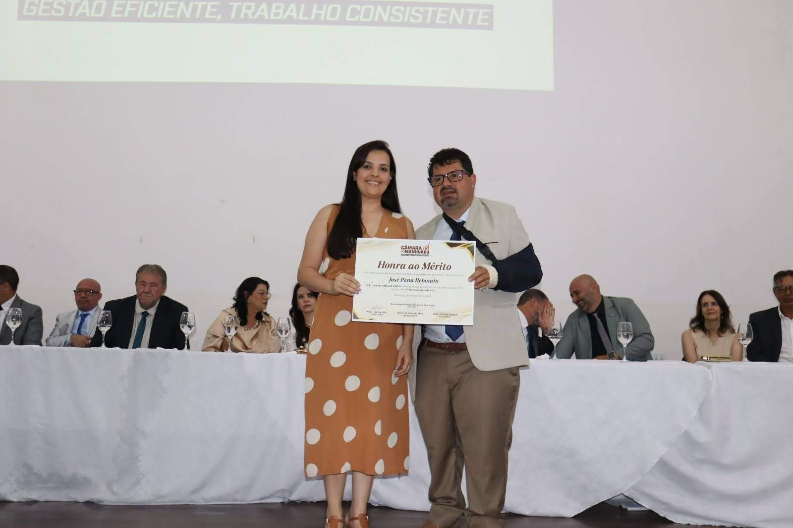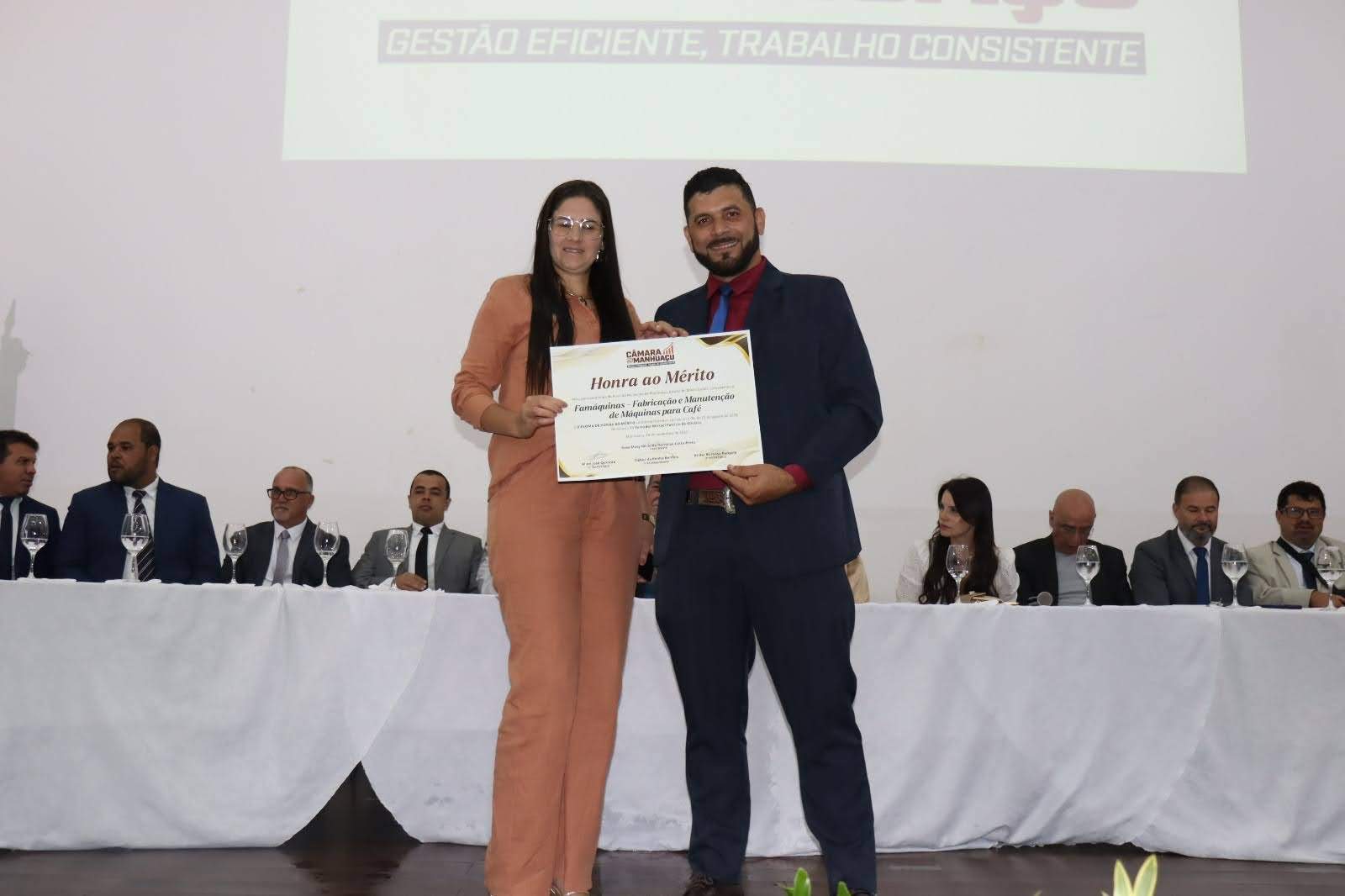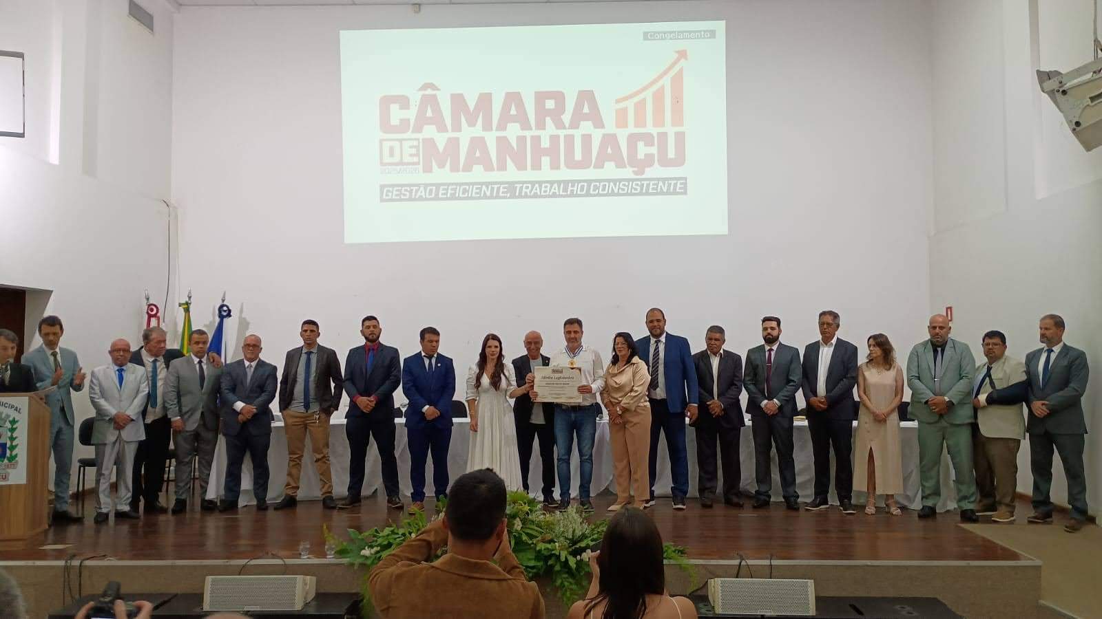 MANHUAÇU (MG) - Em sessão solene realizada na noite da última sexta-feira (28/11), a Câmara Municipal de Manhuaçu prestou homenagens a várias personalidades e empresas de destaque no município. A cerimônia foi marcada pela confraternização, com a entrega de diplomas de Cidadania Honorária, Cidadania Benemérita, Honra ao Mérito e da Medalha do Mérito Legislativo a 37 homenageados. Como já virou tradição ao final de cada ano, o evento aconteceu no anfiteatro da casa do legislativo e registrou grande presença de público.