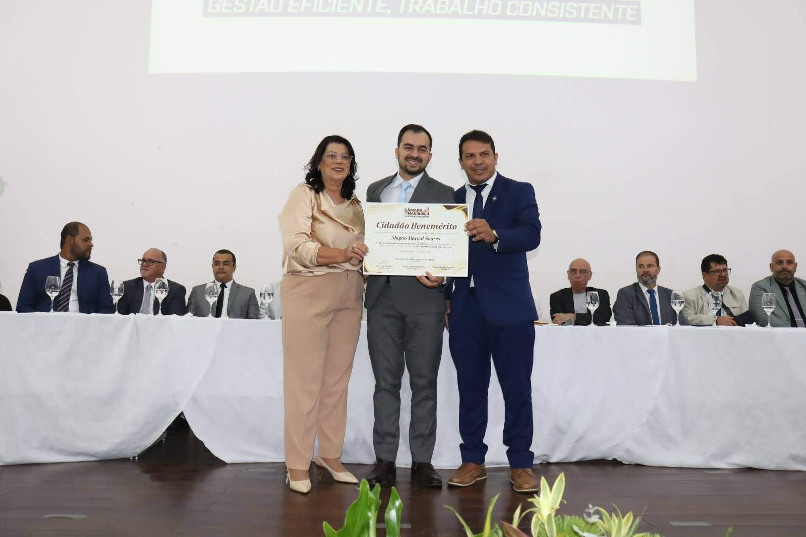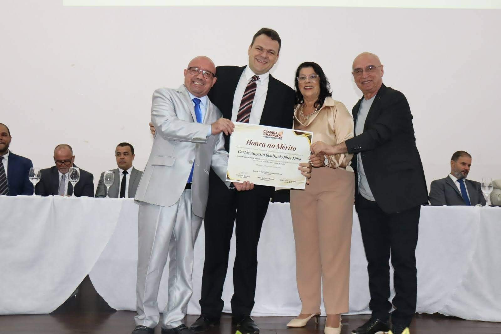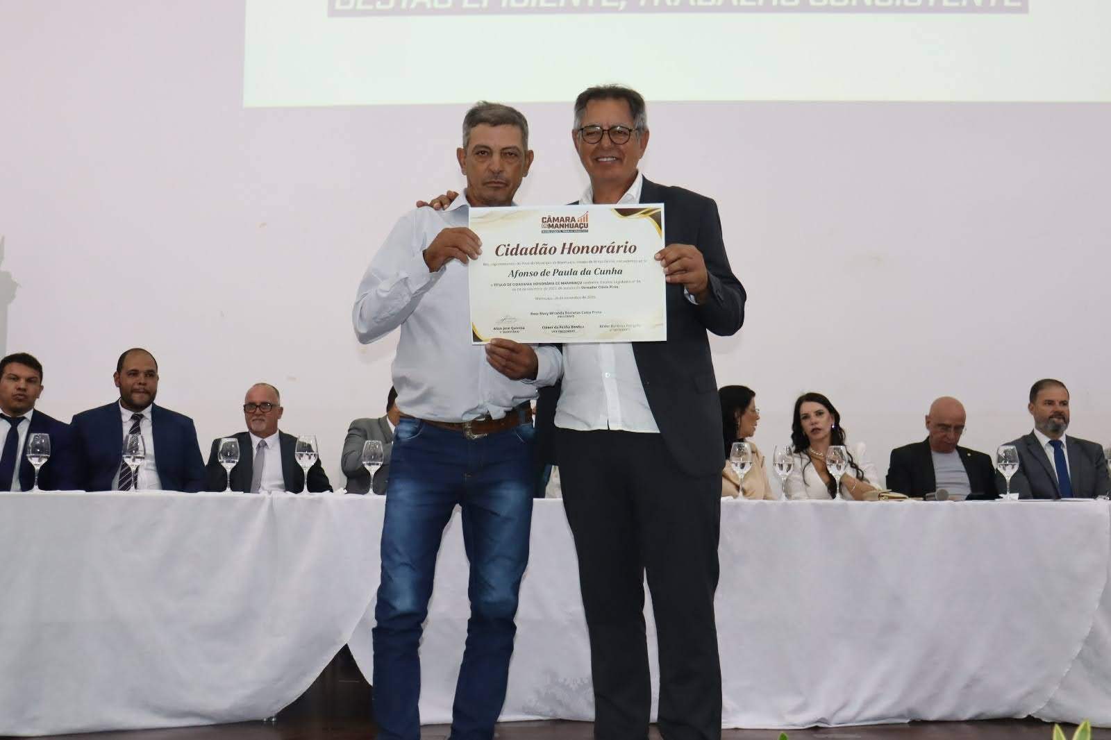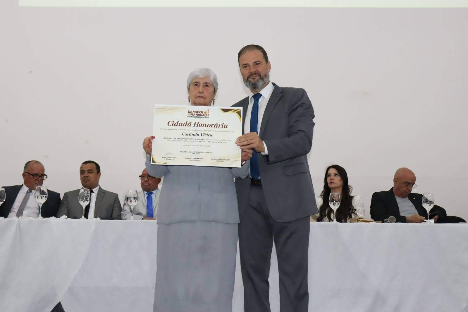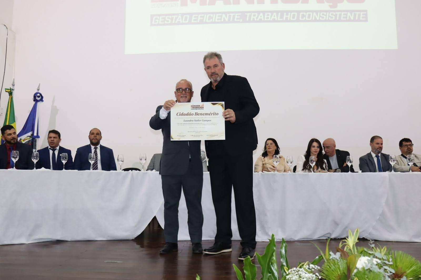 MANHUAÇU (MG) - Em sessão solene realizada na noite da última sexta-feira (28/11), a Câmara Municipal de Manhuaçu prestou homenagens a várias personalidades e empresas de destaque no município. A cerimônia foi marcada pela confraternização, com a entrega de diplomas de Cidadania Honorária, Cidadania Benemérita, Honra ao Mérito e da Medalha do Mérito Legislativo a 37 homenageados. Como já virou tradição ao final de cada ano, o evento aconteceu no anfiteatro da casa do legislativo e registrou grande presença de público.