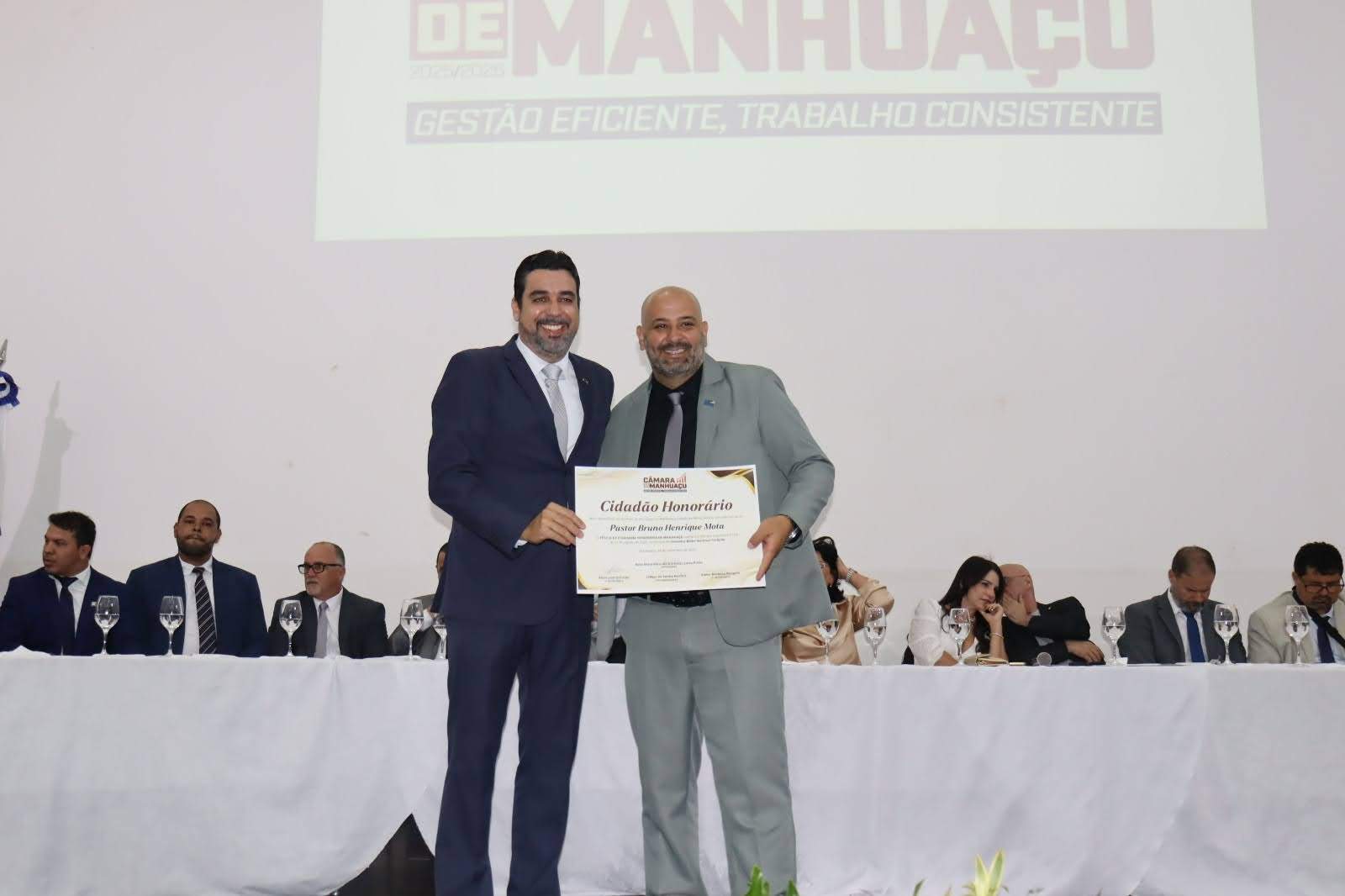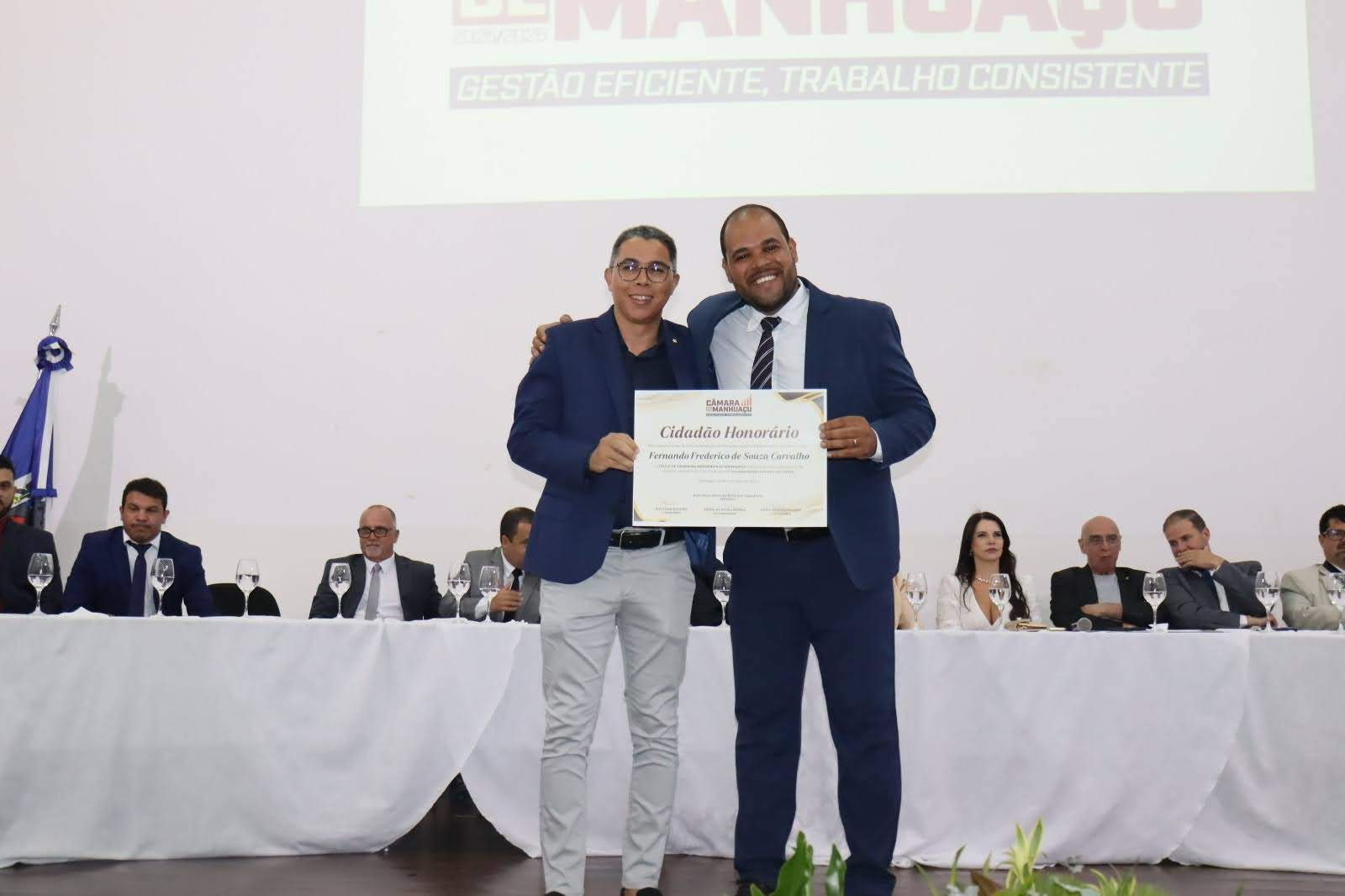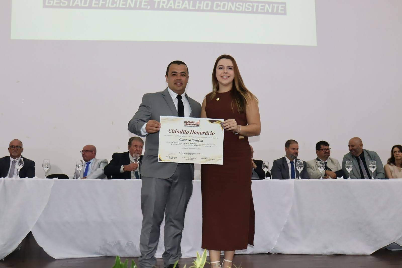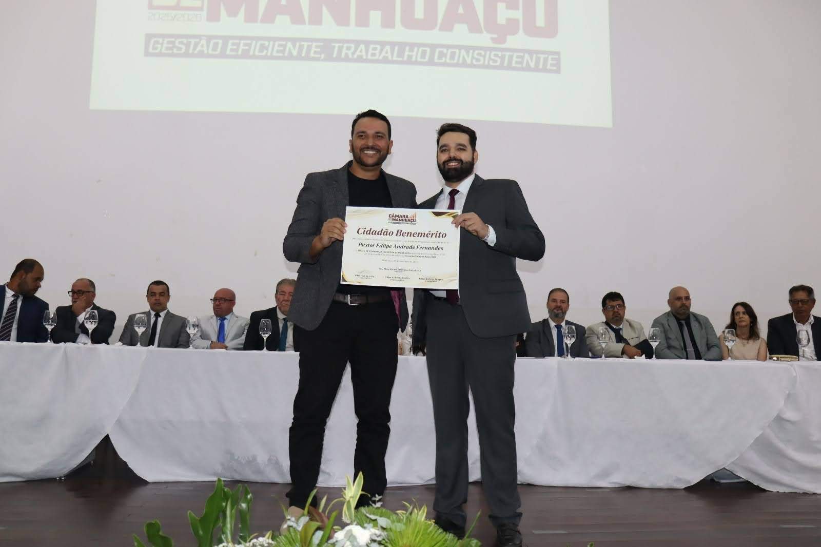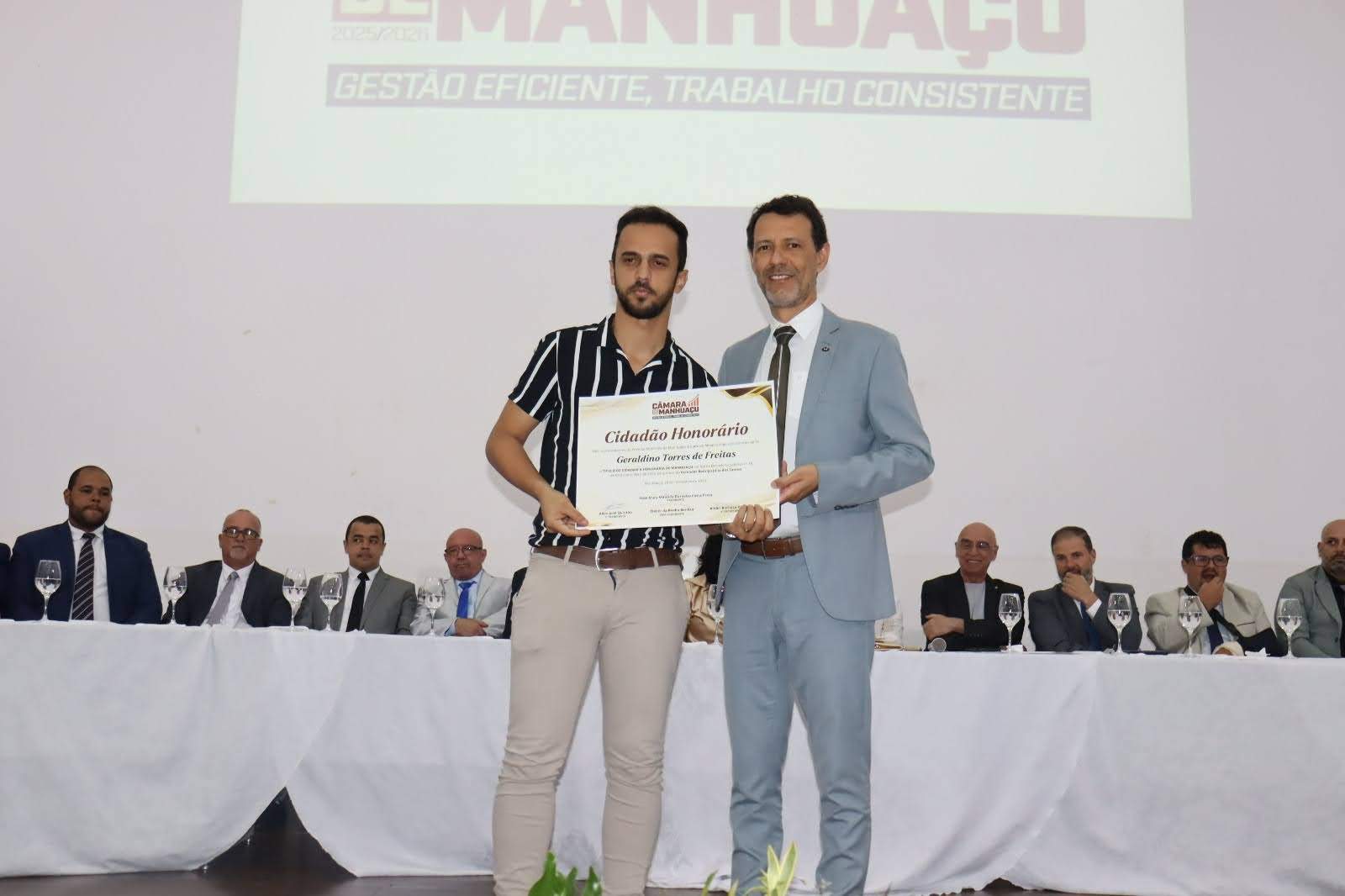 MANHUAÇU (MG) - Em sessão solene realizada na noite da última sexta-feira (28/11), a Câmara Municipal de Manhuaçu prestou homenagens a várias personalidades e empresas de destaque no município. A cerimônia foi marcada pela confraternização, com a entrega de diplomas de Cidadania Honorária, Cidadania Benemérita, Honra ao Mérito e da Medalha do Mérito Legislativo a 37 homenageados. Como já virou tradição ao final de cada ano, o evento aconteceu no anfiteatro da casa do legislativo e registrou grande presença de público.