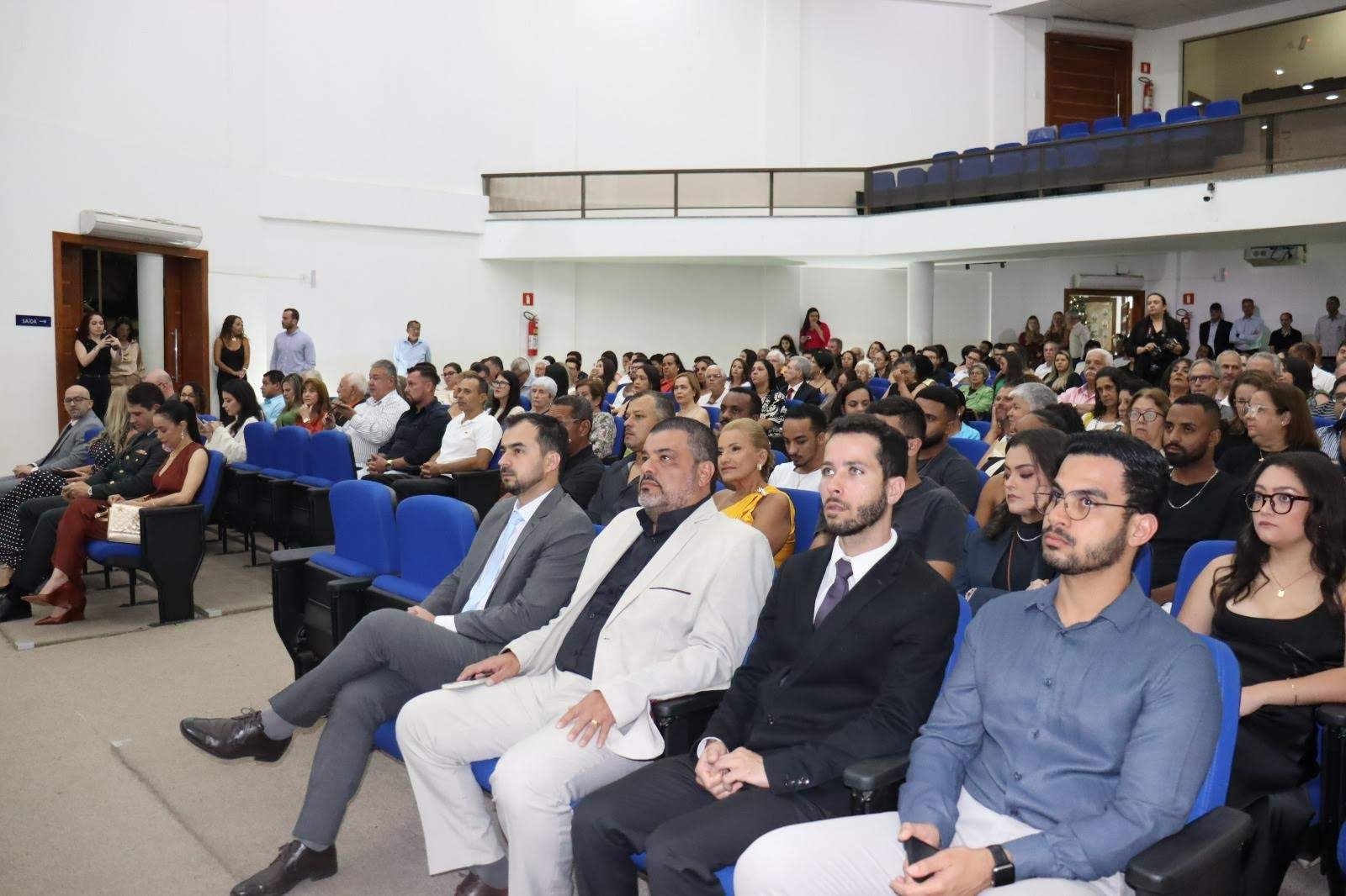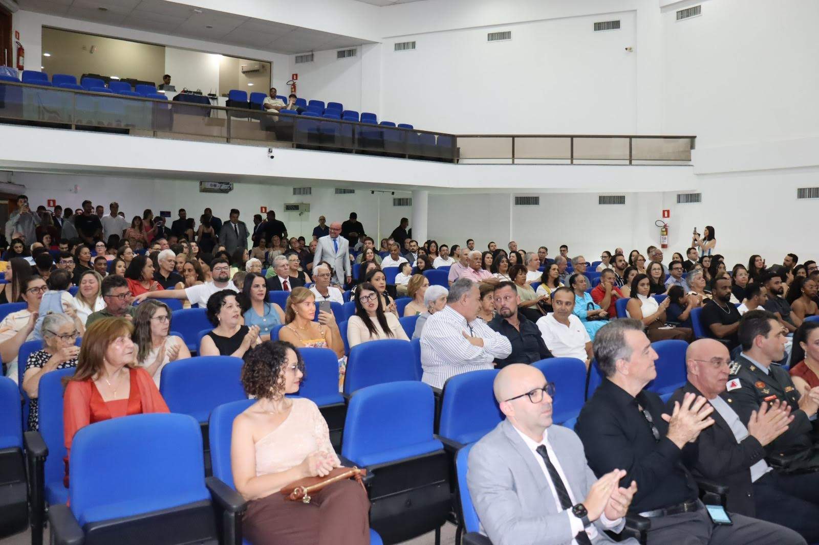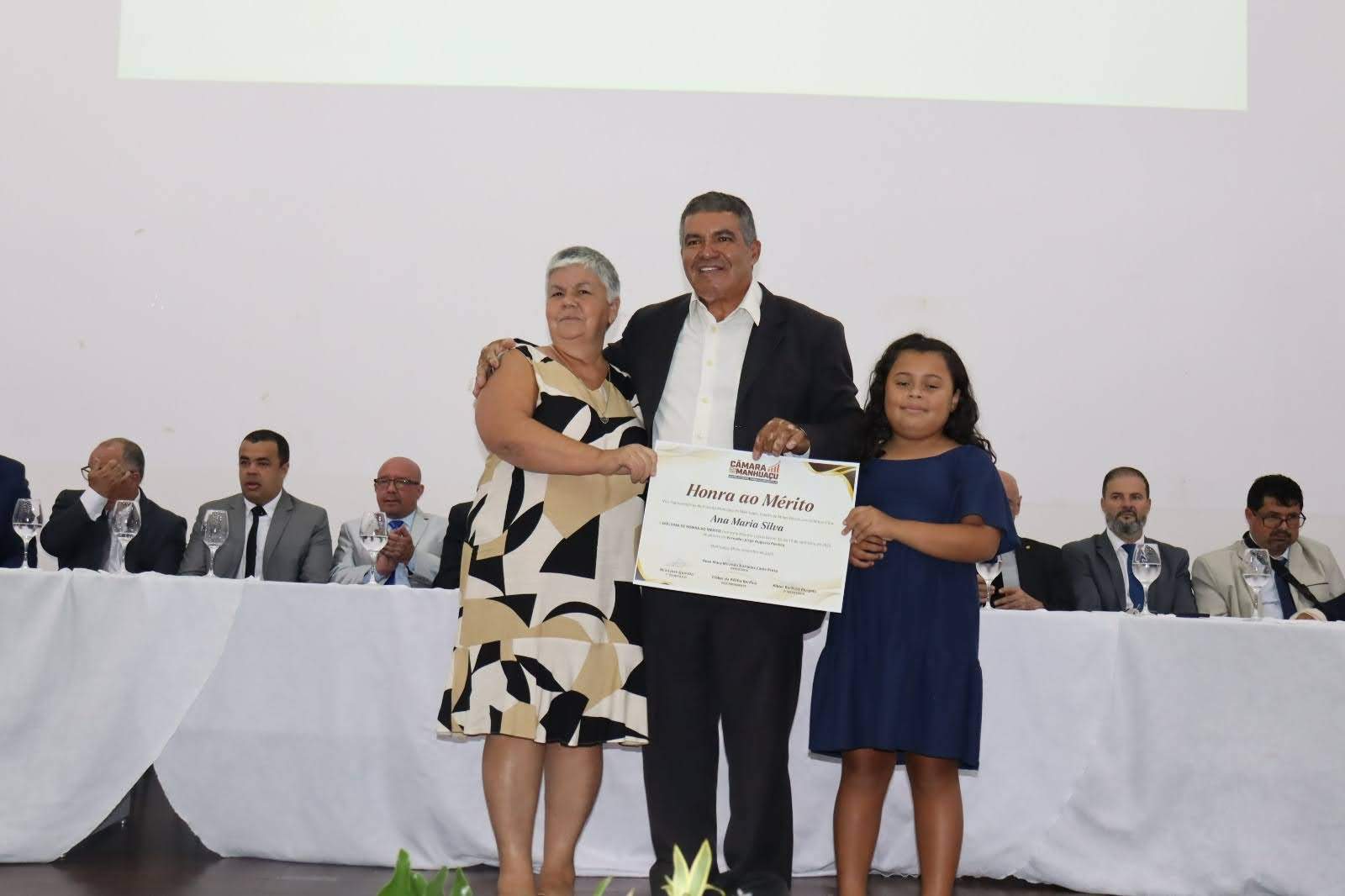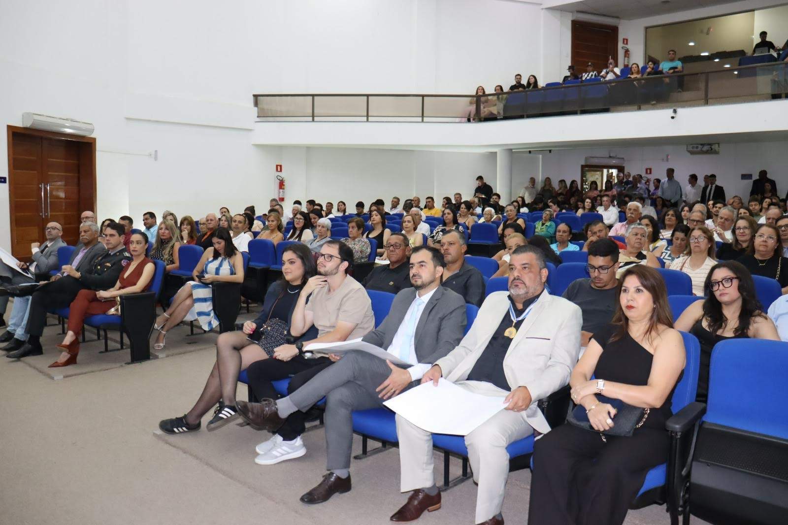 A solenidade prosseguiu com a entrega de 17 diplomas de Honra ao Mérito, cinco títulos de Cidadania Benemérita, 12 certificados de Cidadania Honorária e três medalhas do Mérito Legislativo.