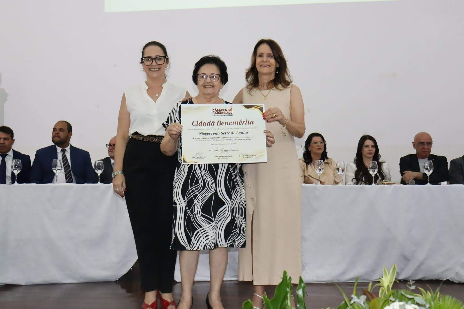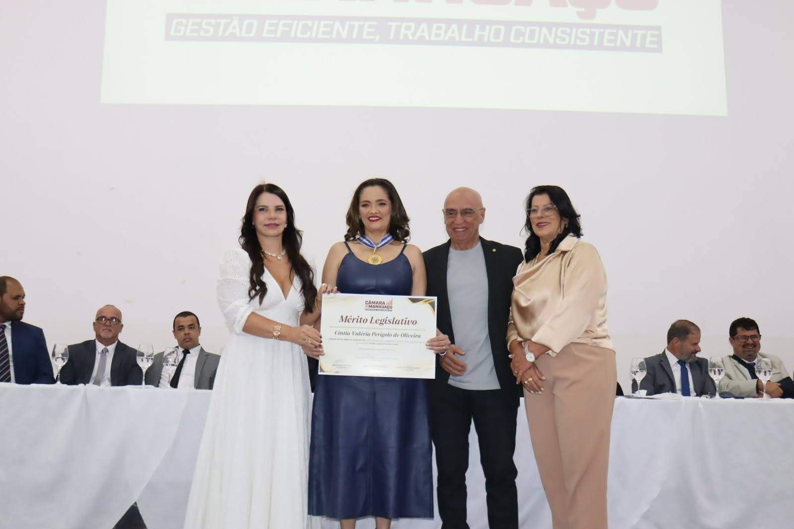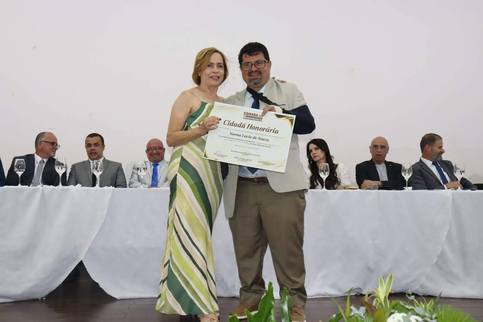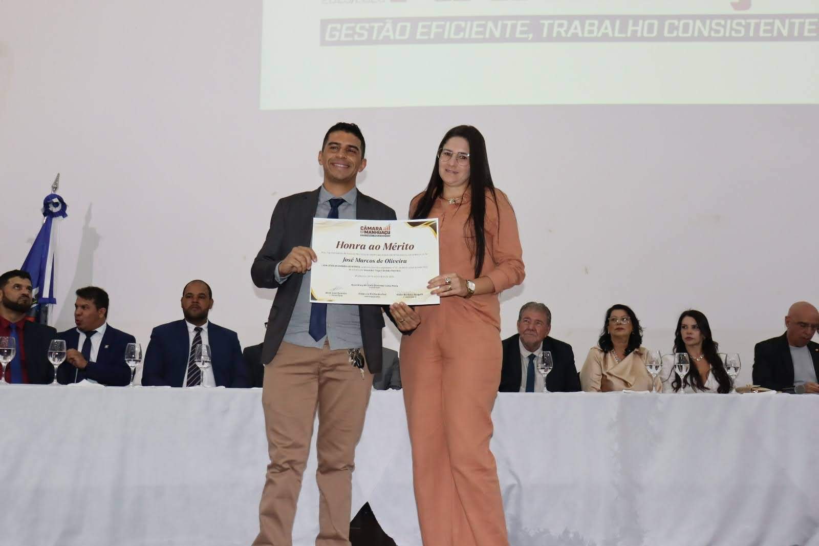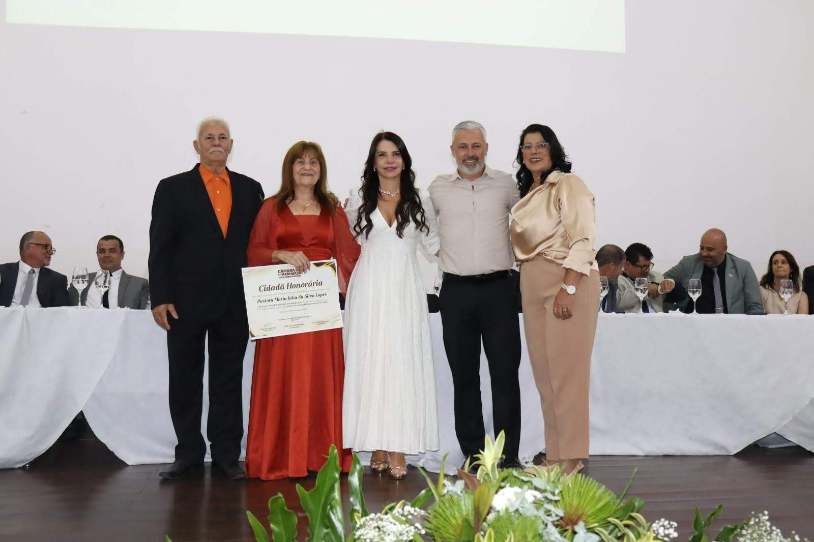 A solenidade prosseguiu com a entrega de 17 diplomas de Honra ao Mérito, cinco títulos de Cidadania Benemérita, 12 certificados de Cidadania Honorária e três medalhas do Mérito Legislativo.