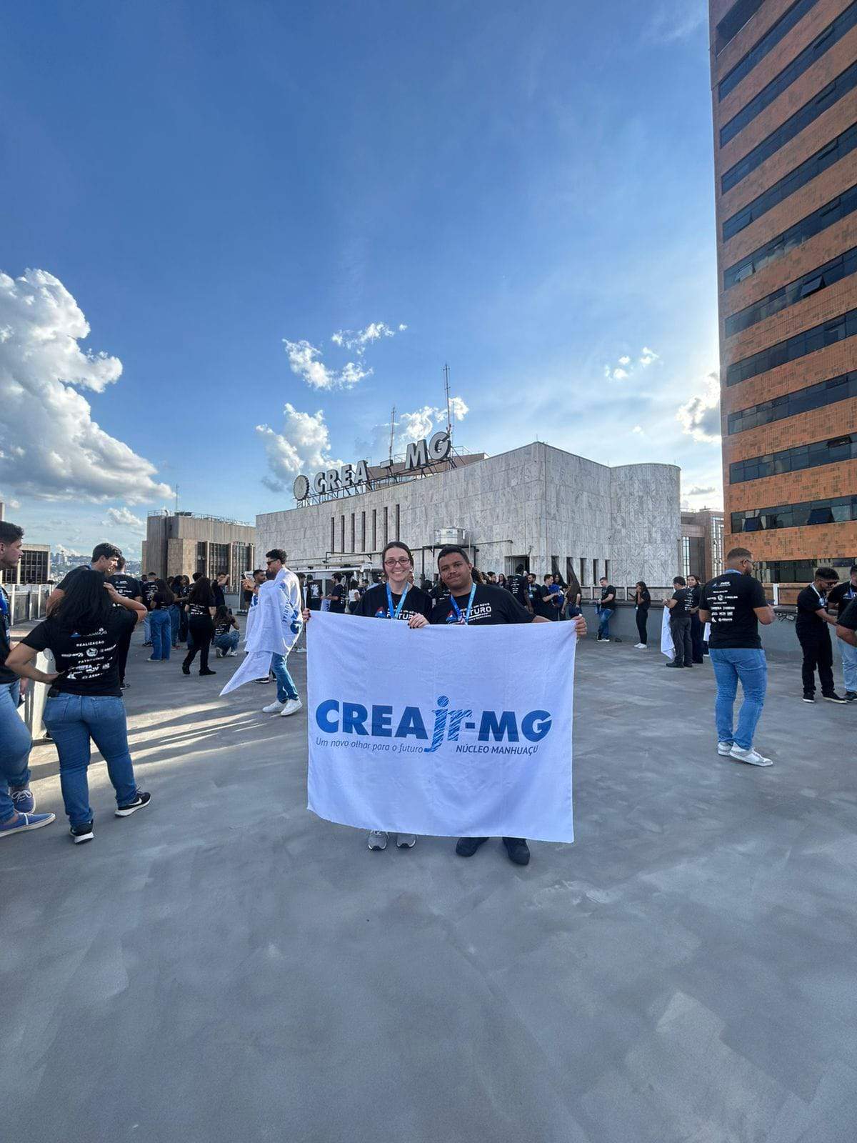 Representaram o núcleo na cerimônia Susanne Martins, coordenadora geral e estudante de Agronomia da Faculdade do Futuro, e Luiz Gonzaga, coordenador geral adjunto e estudante de Engenharia Civil do Centro Universitário Unifacig, ambos do 6º período.