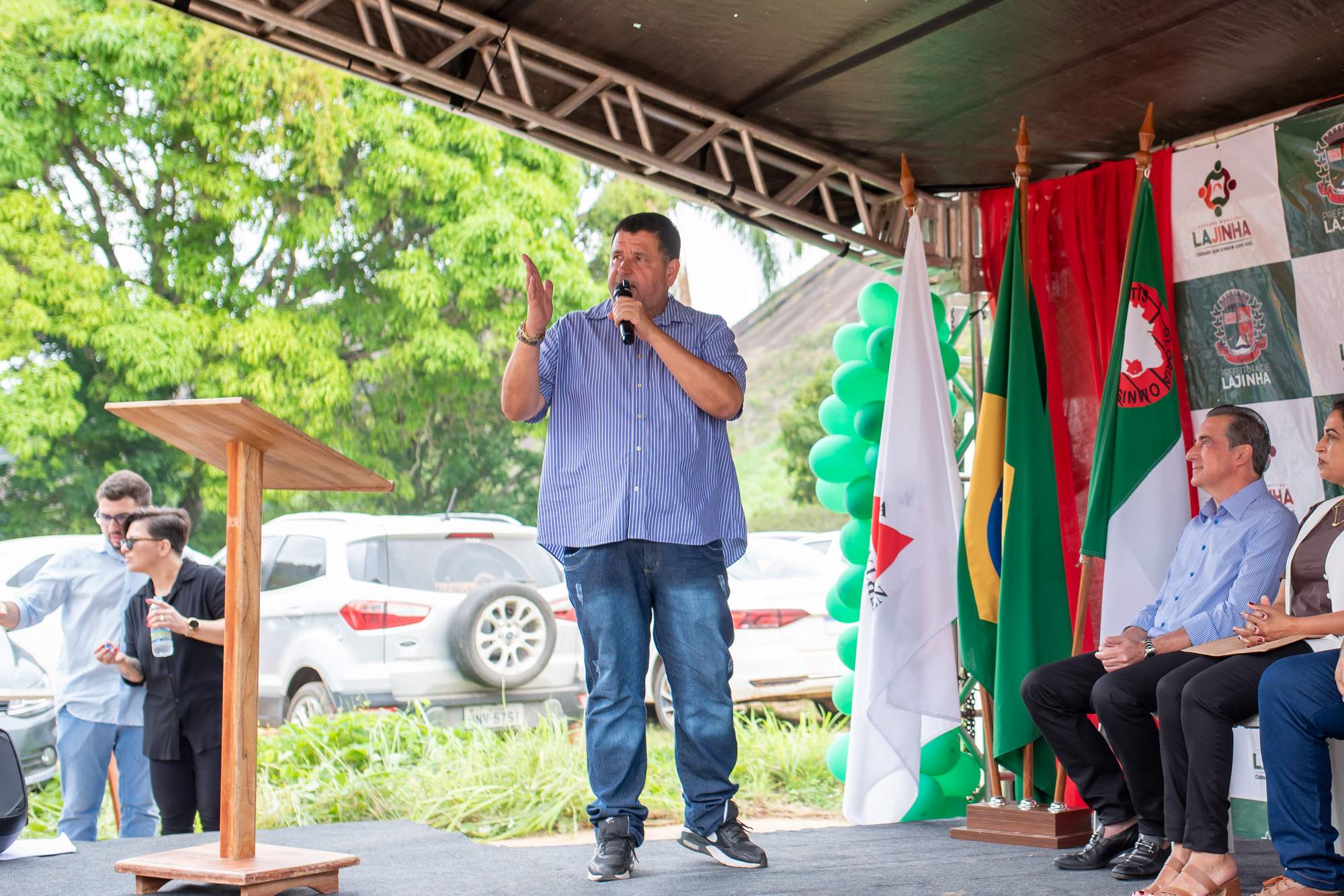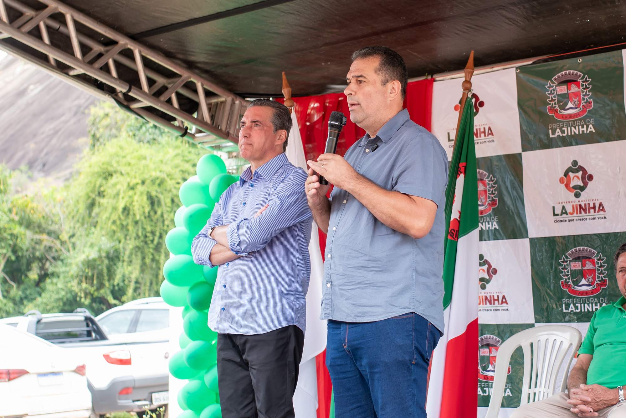 “3,5 milhões de reais para o calçamento até o santuário de Nossa Senhora Aparecida. Que grande Vitória. Pessoal, estamos aqui hoje em gratidão. Agradecer pelo povo de Lajinha. Gratidão a esse grande amigo, Deputado João Magalhães, obrigado Deputado, por tudo que você tem feito por Lajinha há vários anos e pelo compromisso que você fez com a gente nessa nova gestão e por essa grande obra da obra que o senhor nos juntou, dando a oportunidade de realizar um sonho de décadas, nos ajudando e ajudando ao povo do Estado de Minas Gerais”, afirmou o prefeito Renato.