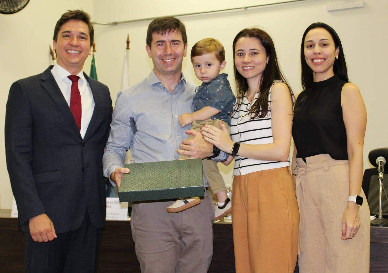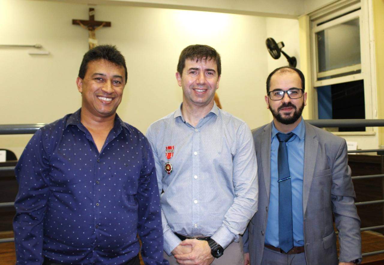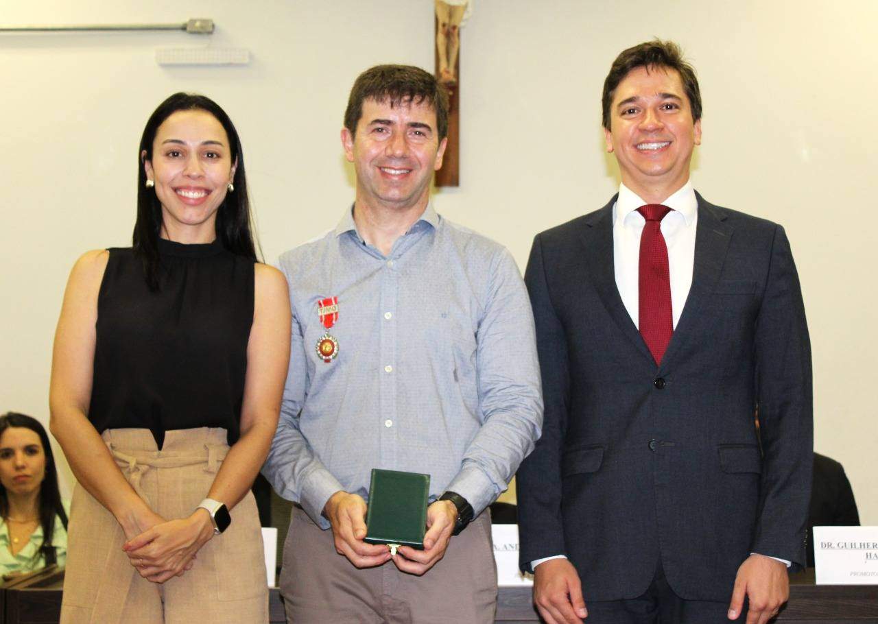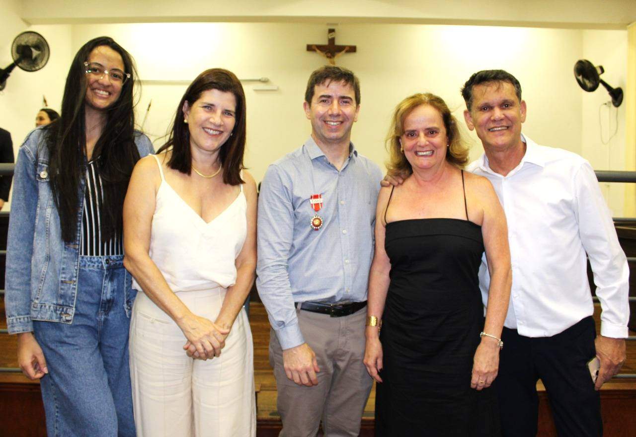 Durante o evento, ele recebeu a medalha diante de familiares, amigos e colegas de trabalho, emocionado com o reconhecimento.