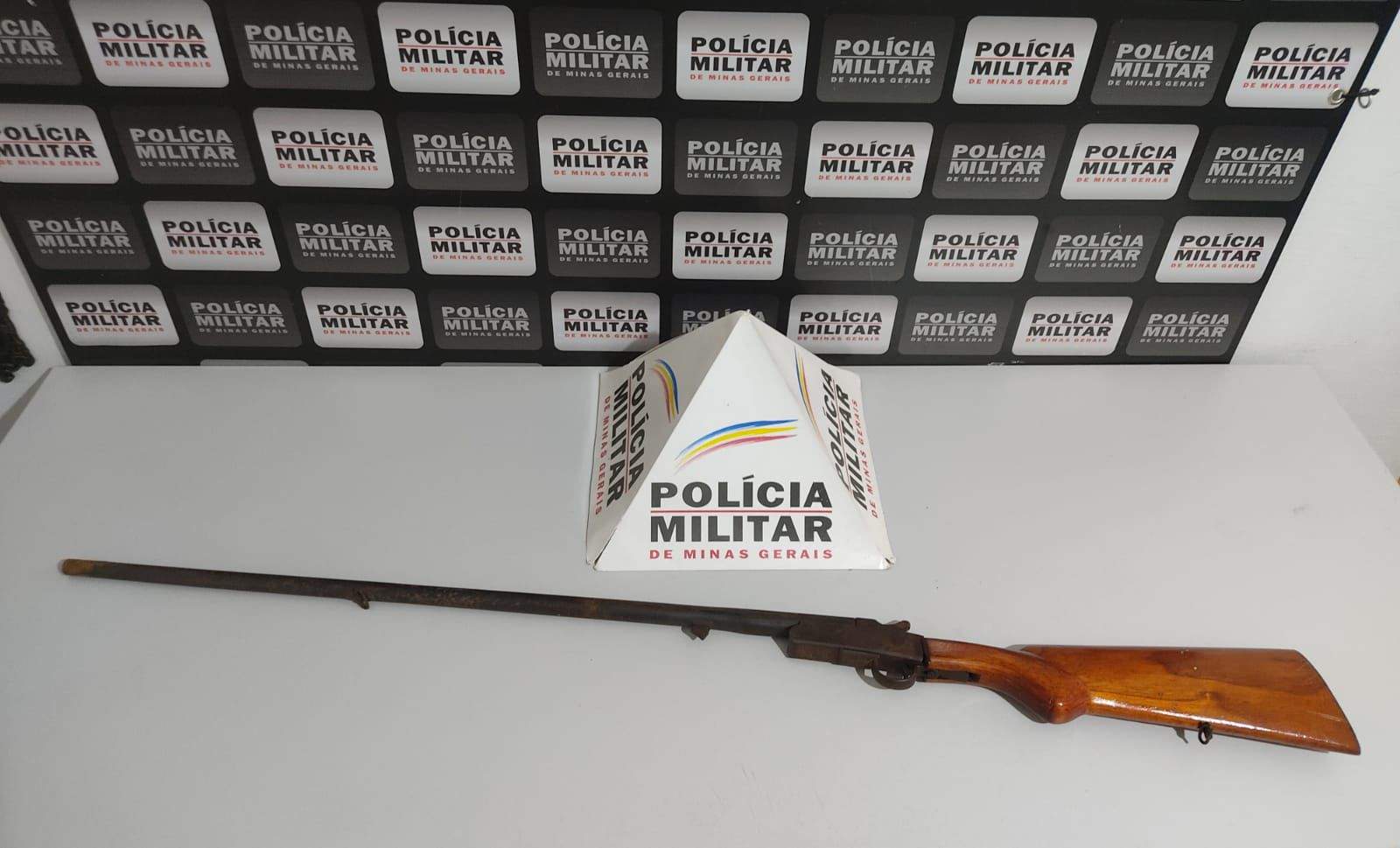 ALTO JEQUITIBÁ (MG) - Uma espingarda foi apreendida pela Polícia Militar nesta quarta-feira (3) durante o atendimento a uma ocorrência de violência doméstica no Córrego dos Tavares, zona rural de Alto Jequitibá.