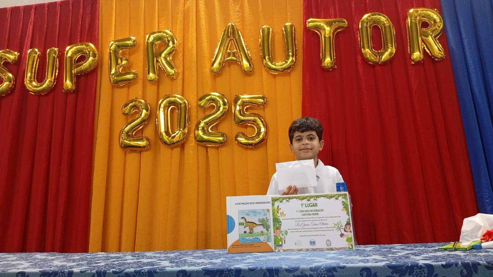 CAPUTIRA (MG) - Na última sexta-feira (5), a Escola Municipal Prefeito Ildeu Araújo Dutra promoveu uma noite de autógrafos com a participação dos alunos, em mais uma edição do Projeto Super Autor. O evento faz parte do calendário escolar e tem como objetivo estimular a criatividade, leitura e escrita dos estudantes, com apoio da família e da equipe pedagógica. A noite também marcou a premiação do aluno Raí Gomes Tinoco Oliveira com o 1º lugar no concurso de redação Caputira Verde.