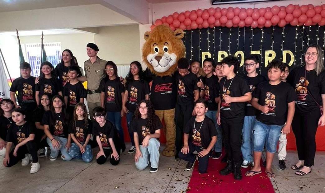 A formatura contou com a presença de autoridades locais, familiares e do mascote Daren, o leão do Proerd, que animou os alunos e convidados. O evento também premiou os estudantes que se destacaram no concurso de redação do programa.