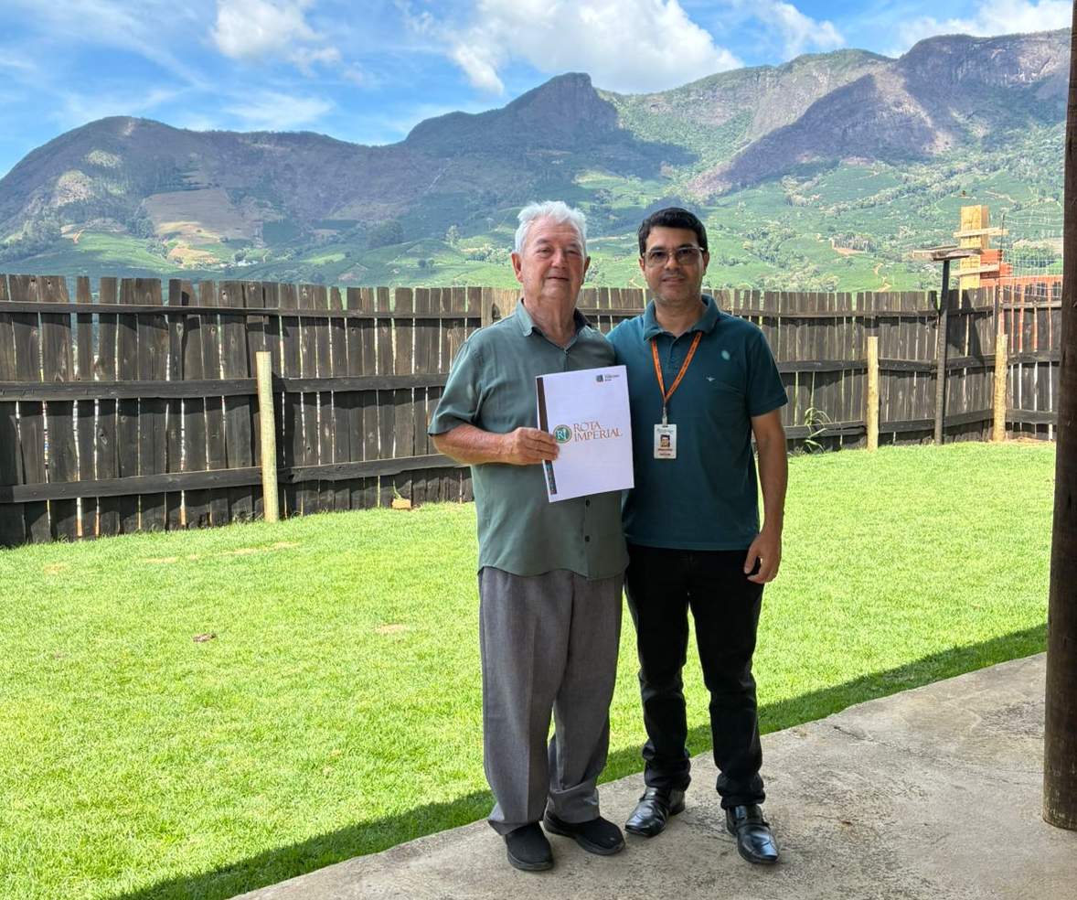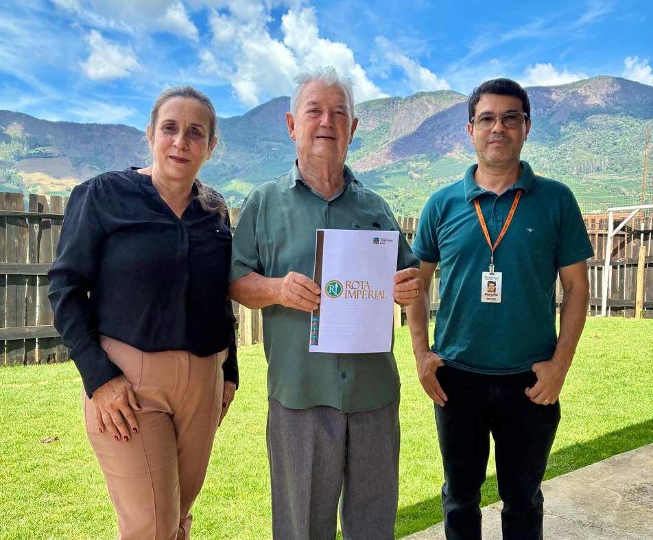 MANHUAÇU (MG) - O prefeito Zé Braz, na presença da Secretária de Cultura e Turismo, Rosemarcia Dormelas e do Gestor Executivo da IGR Montanhas e Fé, Marcílio Medeiros, oficializou a participação do município na Rota Imperial, ao assinar o Protocolo de Intenções que integra São João do Manhuaçu ao trajeto histórico que conecta Ouro Preto/MG a Vitória/ES.